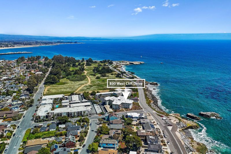 Welcome to your dream home at 890 West Cliff #8. Embrace the stunning 180 degree sweeping views of Monterey Bay. This single-level condo offers modern living with breathtaking sunrise to sunset ocean views. Front end unit has completely unobstructed lookouts with expansive windows throughout the entire home. Watch the vibrant coastal life, surfing, pelicans, whales, otters, seals, and sailboats along West Cliff Promenade. This immaculate condo showcases a modern & unique flair, featuring high ceilings and recessed lighting, oak floors, and an open floor plan making it perfect for entertaining. Chef's kitchen features stainless steel appliances and granite countertops. With 1,443 square feet of living space, this home offers two spacious bedrooms and two full bathrooms, with master suite, providing ample comfort and privacy. The covered patio deck is perfect for enjoying the jaw dropping waterfront views. For convenience this property boasts a detached garage with included storage. Located in the heart of Santa Cruz, this turn-key condominium has direct access to the best of coastal living. Step outside your door to experience & explore Lighthouse Field and West Cliff Drive, world-class surfing, and scenic beauty. Embrace the coastal lifestyle in this exceptional oceanfront home.