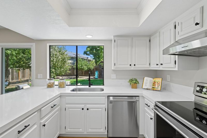 - 220 Volt Outlet, Cooktop - Electric, Countertop - Quartz, Dishwasher, Exhaust Fan, Garbage Disposal, Hood Over Range, Oven - Self Cleaning, Oven Range - Electric
