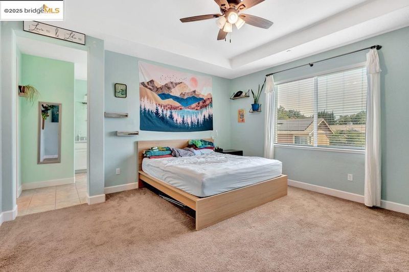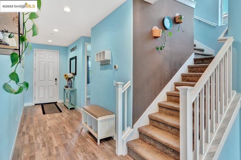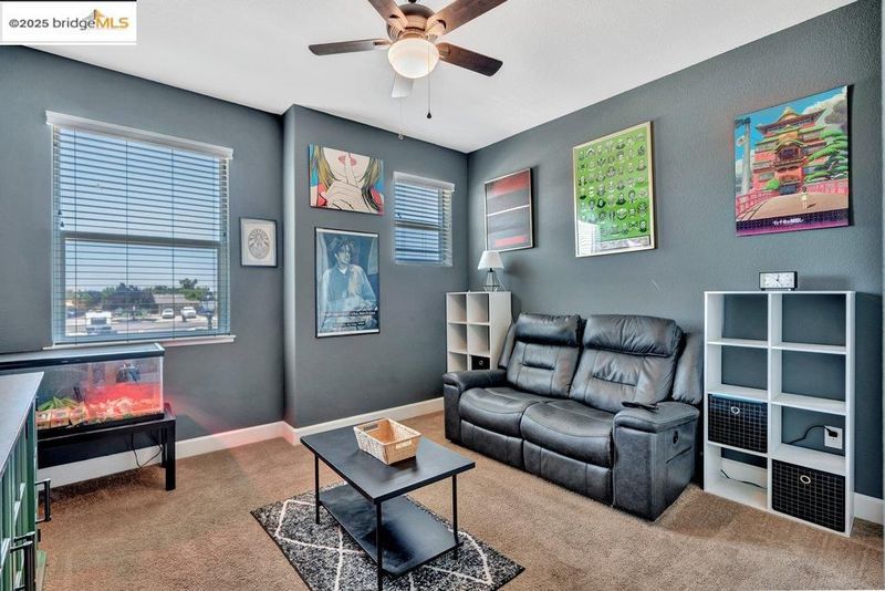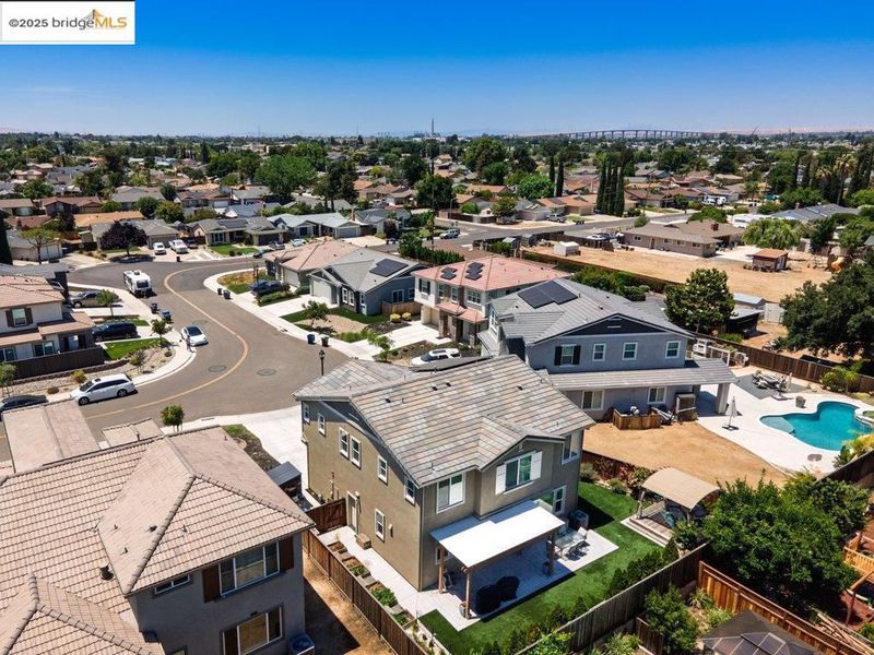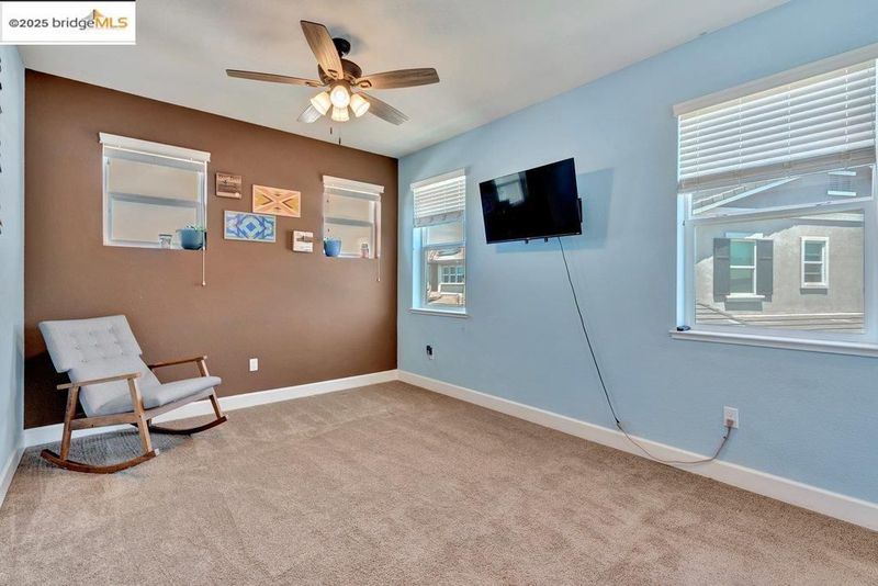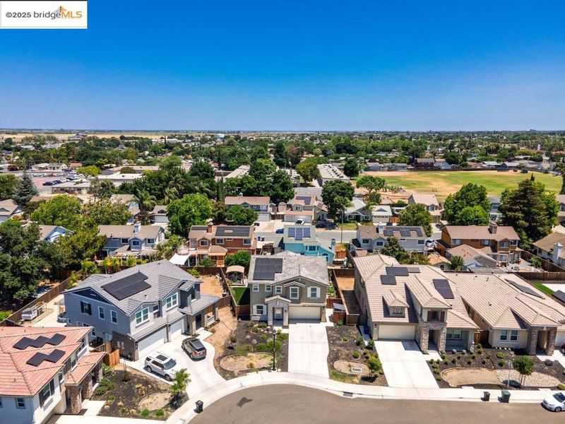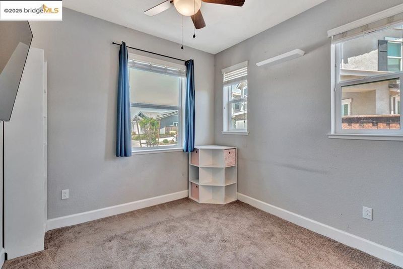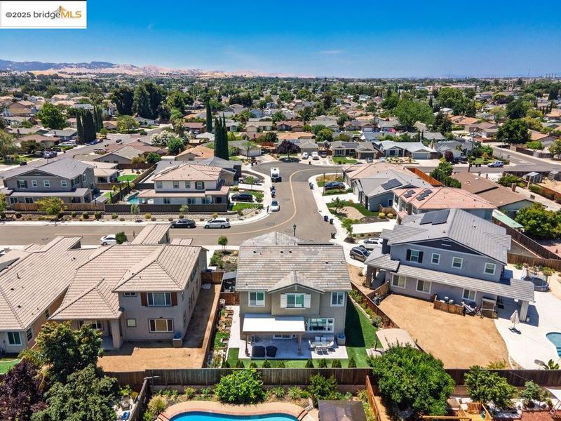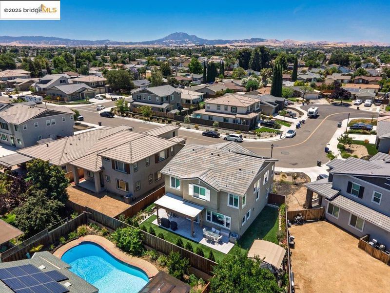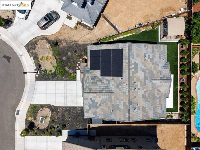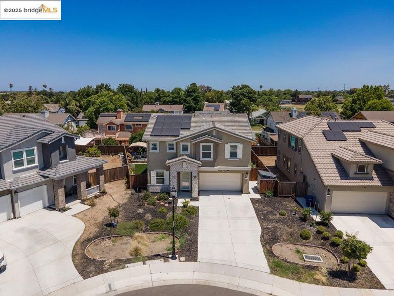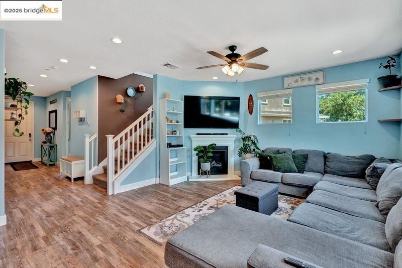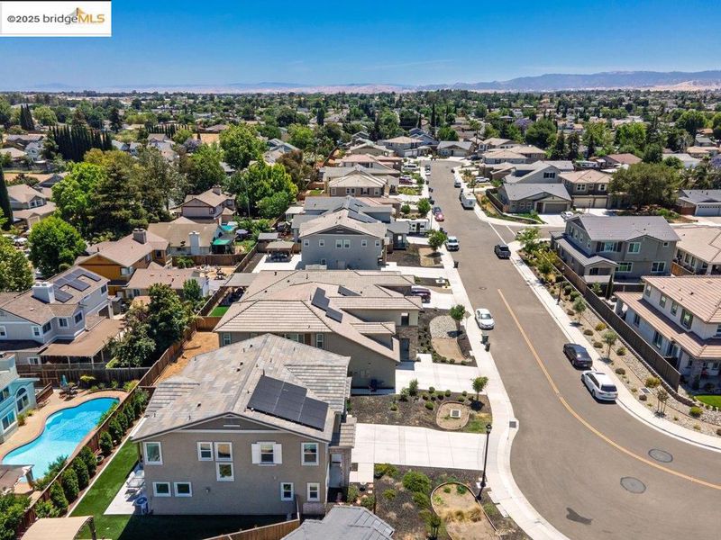 Welcome to this nearly new 5-bedroom, 3-bath home built in 2022. The open floorplan includes a modern kitchen with granite counters, stainless steel appliances, a breakfast bar, walk-in pantry, and dining area that flows into the main living space. A bedroom and full bath on the first floor offer flexibility for guests or multi-generational living. Upstairs features a loft, laundry room, and spacious primary suite with dual sinks, soaking tub, and separate shower. Energy-efficient upgrades include paid solar, a tankless water heater, and EV charging station. The backyard is low-maintenance with artificial grass, a covered patio, gazebo, raised garden bed, and elevated sitting area. Conveniently located near shopping, schools, parks, and freeway access.