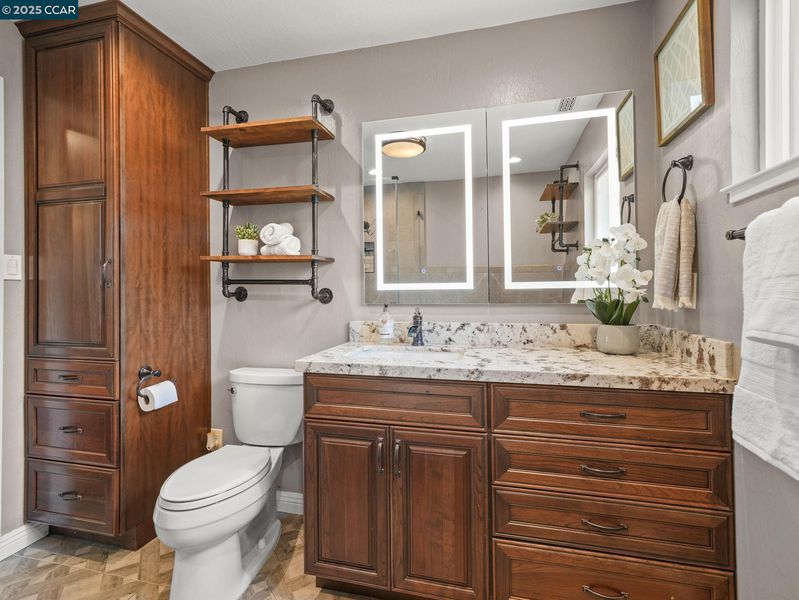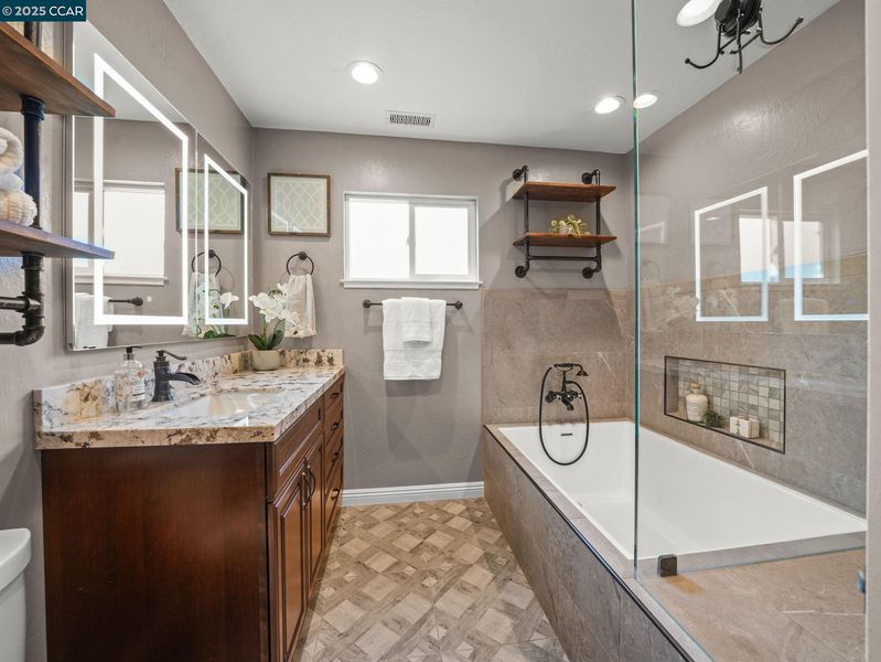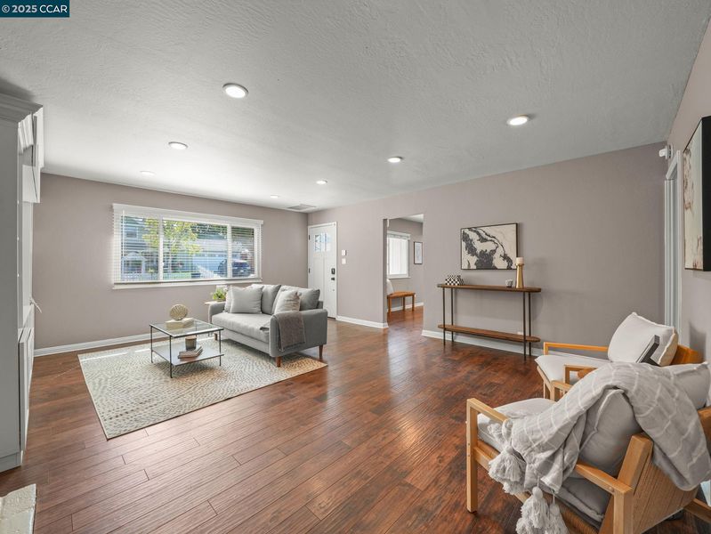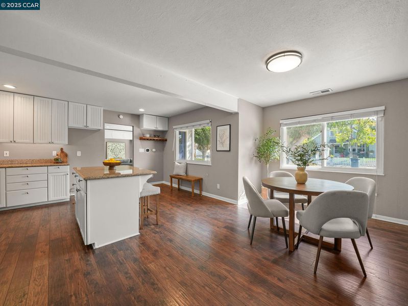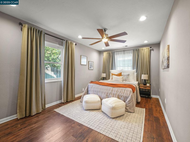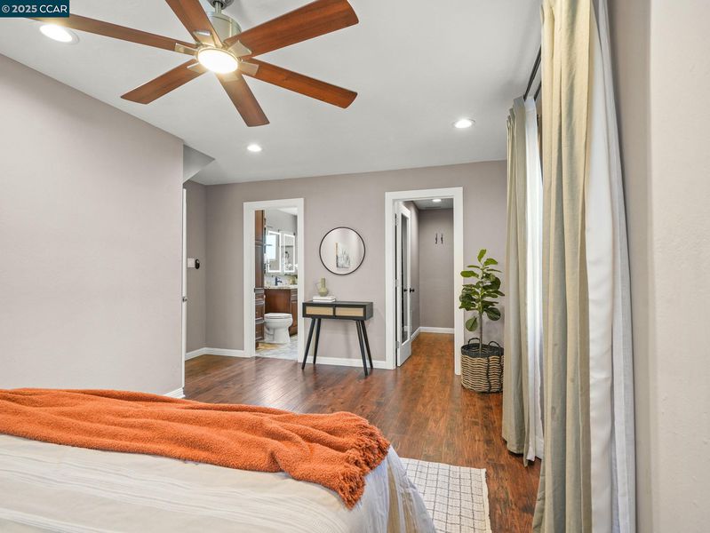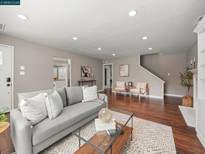Welcome to refined East Bay living! This gorgeous corner-lot residence is tucked within the highly sought-after Canterbury Village enclave of Concord. Thoughtfully reimagined with high-end finishes, this 3 bedroom, 2 bath home showcases an expansive chef’s kitchen, complete with stainless steel appliances and pantry, designed for culinary artistry and effortless entertaining. Just off the cozy family room is the oversized first-floor owner’s suite, which offers a private retreat with a spa-inspired bath. For convenience and energy efficiency, there is central heat and AC downstairs, and a two-zone mini-split upstairs ensures each bedroom is the exact temperature you want- rain or shine! At the same time, the spacious backyard—complete with side-yard access — is perfect for a boat, trailer, or simply an additional hosting space, setting the stage for countless elegant gatherings beneath the stars. Located in an intimate cul-de-sac, the property offers both privacy and prestige. It is just moments from upscale shopping and dining at The Veranda, downtown Walnut Creek, popular commute routes, and top-rated schools. With its sophisticated design and exceptional location, this home delivers the perfect blend of luxury, convenience, and charm. Come see this beautiful home today!