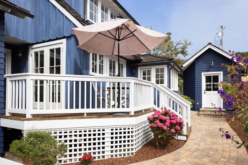 Welcome to Sea Spray, a quintessential Carmel-by-the-Sea home that exudes character and beauty throughout. Located on a quiet street a mere six blocks from the heart of the village. The residence offers three bedrooms, each with an en-suite full bathroom, plus a powder room conveniently located off the kitchen. High ceilings and abundant windows fill the interiors with natural light. An elevated side deck is a wonderful venue to enjoy the afternoon sun, while the backyard centers around a majestic sequoia tree and Carmel Stone fireplace, perfect for evenings outdoors in good company. Meticulously cared for by long-time owners with recent upgrades including refinished hardwood floors, fresh interior and exterior paint, new furnace, new landscaping, and an epoxy-finished garage floor. Fully fenced and gated, the property is situated just a short walk to town.