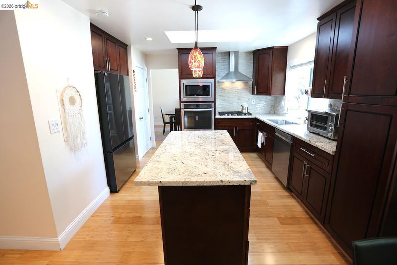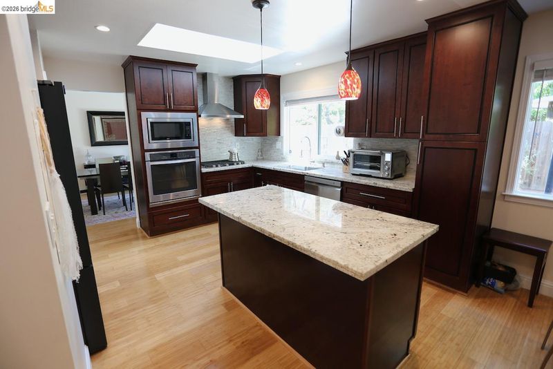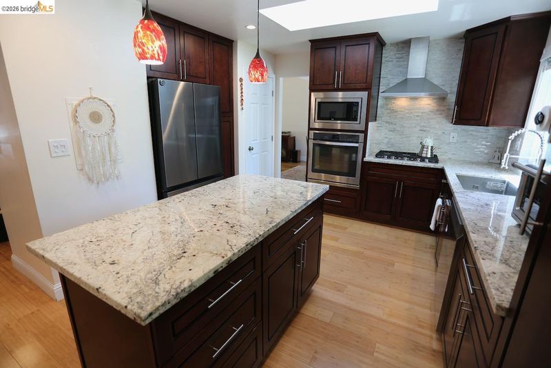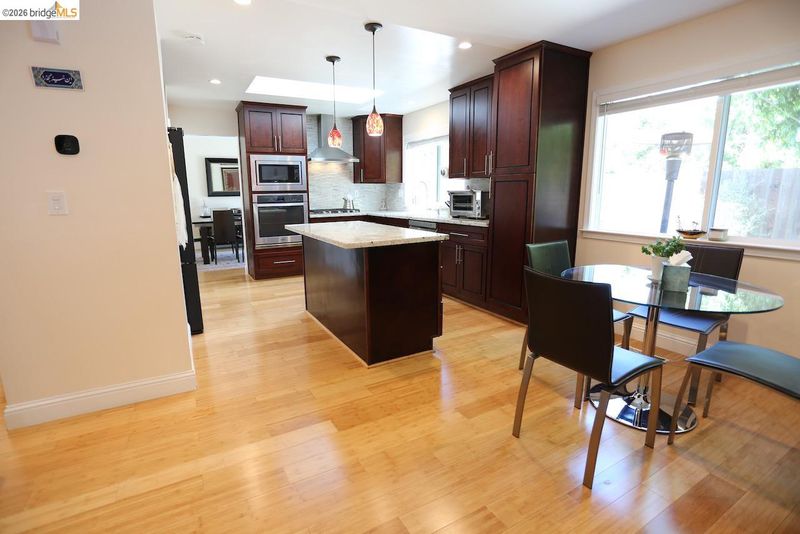 - Dishwasher, Microwave, Range, Refrigerator, Dryer, Washer, Breakfast Nook, Counter - Solid Surface, Disposal, Kitchen Island, Pantry, Range/Oven Built-in, Skylight(s)