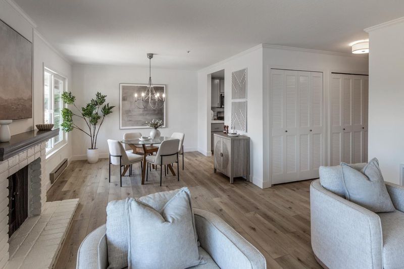 A fabulous downtown lifestyle awaits! With light-filled interiors and fresh updates, this top-floor condo offers the unique opportunity to move right in and immediately enjoy all of the wonderful shops and restaurants right outside your front door. The home itself boasts fabulous open-concept living spaces primed for entertaining, a large balcony for alfresco living, and spacious bedrooms. A welcoming foyer introduces wide luxury vinyl plank floors that extend throughout, and the kitchen has painted wood cabinetry, tile countertops and full-height backsplashes, and stainless steel appliances. The dining area is framed by tall windows overlooking the pool and sits fully open to the living room with a fireplace and sliding glass doors to the balcony. The spacious primary suite enjoys a walk-through closet with mirrored doors and an en suite bath, while the generously-sized second bedroom features abundant natural light and a large closet. Community amenities include landscaped pathways and a nearby pool with patio seating. An incredible opportunity to live in a highly sought-after neighborhood just moments from vibrant downtown amenities!