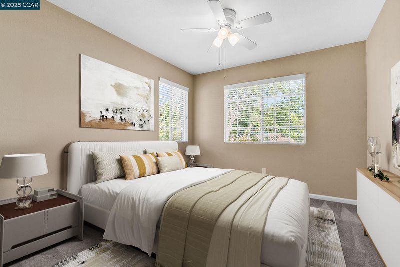 Welcome to this Beautiful Serene and Private 4 bedroom, 2.5 bath home backing to a calming creek, situated on a quiet cul-de-sac. Enter the spacious sun-lit living room, gleaming hardwood flooring, fashionable white plantation shutters, family room with crown molding and cozy fireplace, spacious high ceiling living room and large dining room with crown molding. Updated kitchen boasts granite counters, stainless steel appliances, gas range, crown molding, breakfast bar and slider leading to expansive, private, quite creekside decking with lush view of open space beyond deck. Finished 2-car garage with epoxy flooring and storage cabinets. Private master suite and large master bath overlooking the lush creekside setting. Low HOA dues, $228/mo including front landscaping and community pool. Excellent schools. Easy access to 680, parks, shoppings, restaurants, Costco, and City Center and so much more. Hurry on this one! OH Sat & Sun October 4 & 5 .