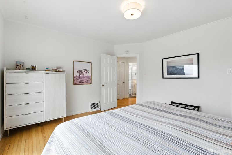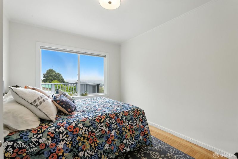 Great opportunity to own a well maintained SFR perched on a Western slope of the Merced Heights neighborhood. This delightful residence perfectly blends original charm and design touches with tasteful updates. Comfortable living space over 2 levels, it has three spacious bedrooms and 1.5 bathrooms. The home has an ideal cozy yet functional layout. Upon entry discover a beautifully renovated kitchen and living room, offering modern amenities and elegant finishes which are sure to charm. Hardwood floors were recently refinished, adding warmth and character. With eight total rooms, there is plenty of space to accommodate your lifestyle, whether working from home or hosting gatherings. Two bedrooms lookout to the expansive deck on the upstairs level. World class western view from both bedrooms and the deck! Downstairs hosts a secondary living room / office, plus a 3rd bedroom with half bath, that exit directly to the hardscape backyard. The yard features a mature fruit and berry garden with enclosed space for a child's play set or fire pit. Enjoy the benefits of a northern / southern exposure, ensuring soft natural light. Garage has 1 full size parking spot + full laundry. Space for 2 additional cars in the driveway.