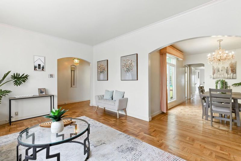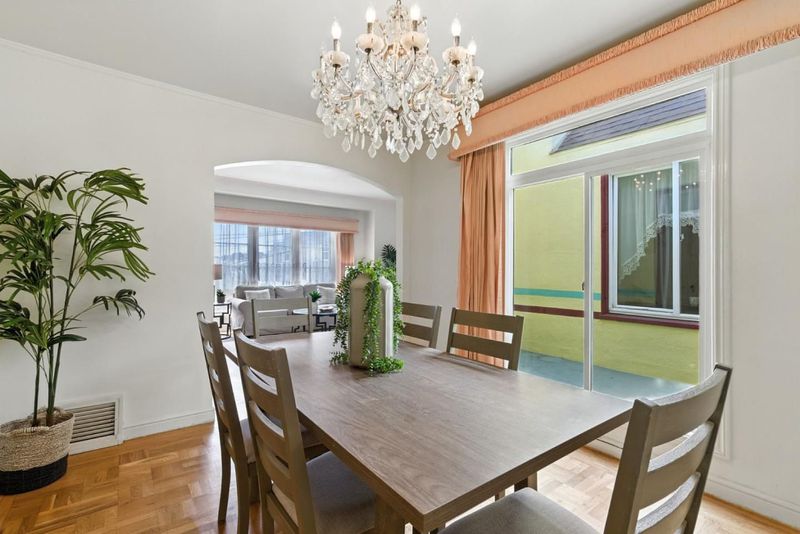 Step into the charm of this Spanish Mediterranean-style home, brimming with light, character, and timeless appeal. Upstairs youll find 2 bedrooms and 1 bathroom, a welcoming living room with a wood-burning fireplace, a formal dining room that opens to a sunlit center patioa signature feature that fills the home with natural lightand a cozy breakfast room nearby. Recently discovered original hardwood floors, beautifully preserved under years of carpet, add warmth and authenticity throughout. The bedrooms and dining room are further enhanced by sparkling Swarovski crystal chandeliers, adding a touch of elegance. Downstairs offers an oversized 1-car garage, a full bathroom, plus an additional room currently used as an officepresenting a potential ADU opportunity (buyer to verify). Outdoors, enjoy lush and fragrant garden. The backyard oasis showcases vibrant bougainvillea, jasmine, sampaguita (the Philippine national flower), phalaenopsis orchids, and a productive lemon tree. The front yard bursts with colorful hydrangeas, creating picture-perfect curb appeal. Ideally located near shopping, public transportation, BART, and Hwy 101, this home offers both convenience and classic San Francisco charm.