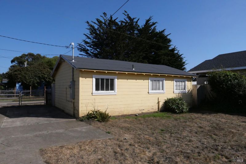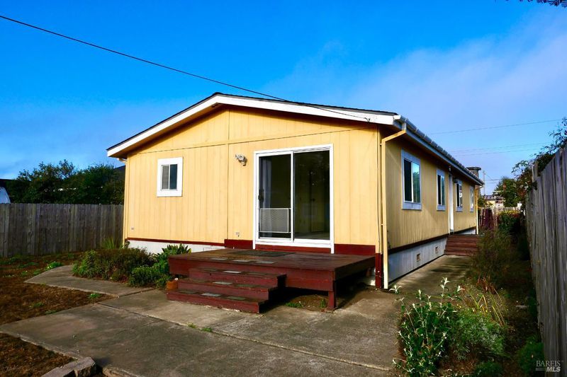 This cheerful manufactured home offers several appealing features; First, its proximity to the iconic Noyo Harbor on a little traveled street. Second, the detached garage/workshop is a wonderful spot for creative ventures with its redwood interior, slab floor and alley access. Finally, the home's inviting floor plan has guest bedrooms and bath on one side, primary bedroom and bath on the other, and a central kitchen open to the living space with an adjoining laundry room. The main living space is bright and airy, especially the well-lit kitchen with its large skylight. The owner has ordered new windows for the living room and dining room to be installed soon. Propane forced air heat will keep things cozy in the winter. Enjoy the fully fenced backyard, perfect for kids and pets. A bonus feature is the cement parking area with power and RV cleanout located next to the garage.
