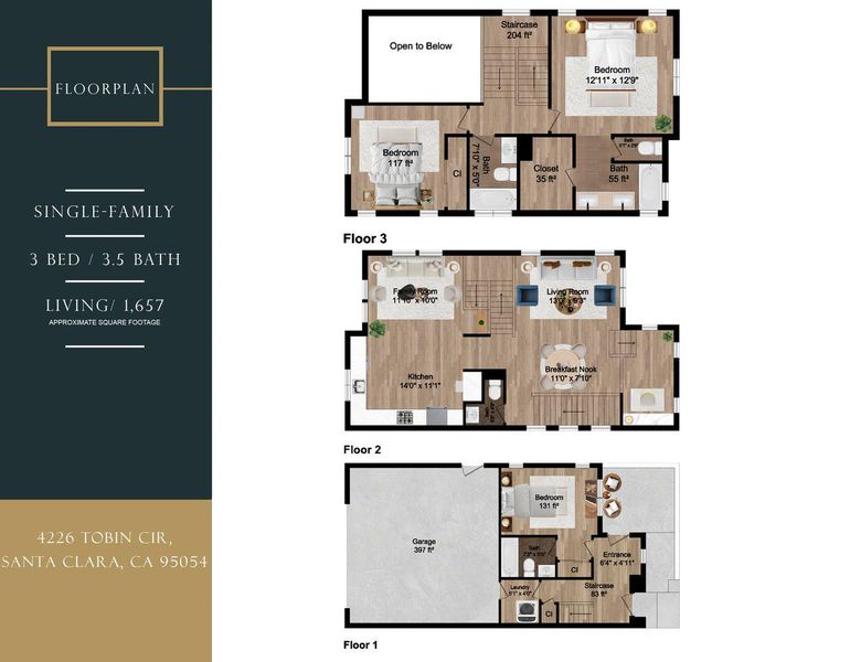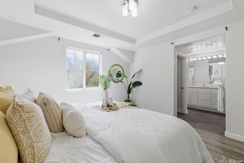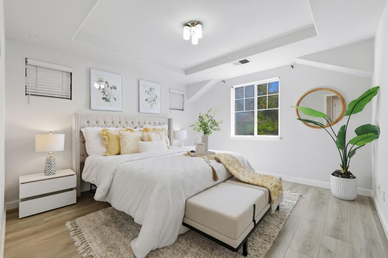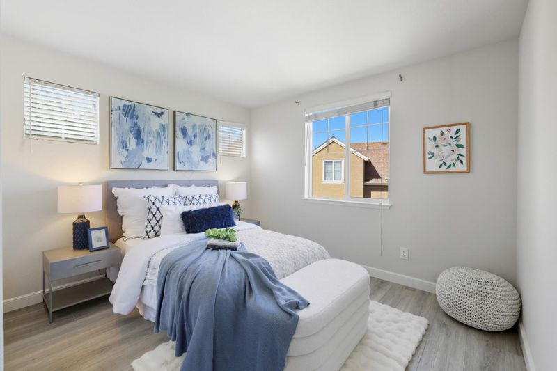 Beautifully maintained 3BD/3.5BA single-family home with 1,657 sq. ft. in a prime Santa Clara location! Open main level with bright living and dining area, modern kitchen with granite counters & stainless appliances. Each bedroom has its own en-suite bath, including a spacious primary suite with walk-in closet. Ground-floor suite ideal for guests or office. Features include half bath on main level, in-unit laundry, central HVAC & attached 2-car garage. Minutes to Rivermark Plaza, Levis Stadium, top tech employers & major freeways.