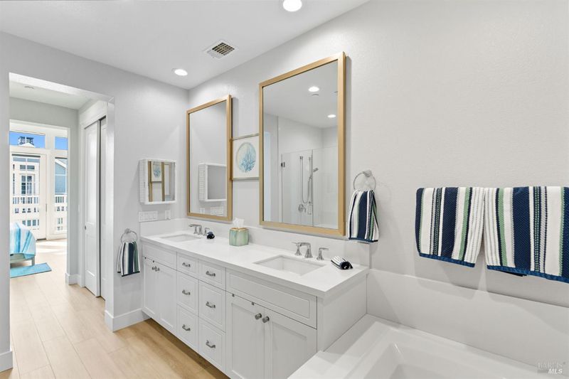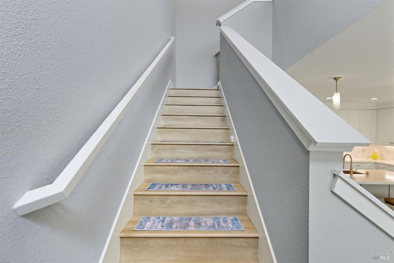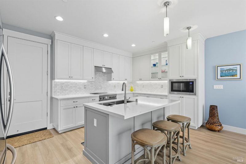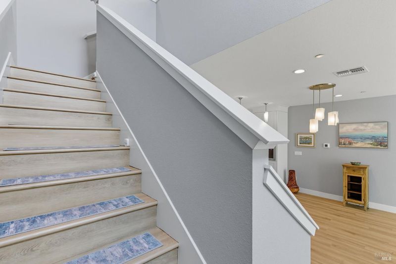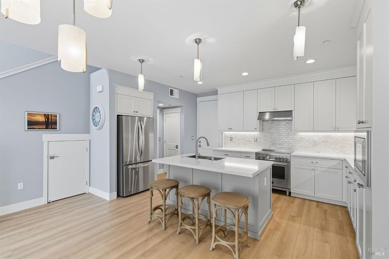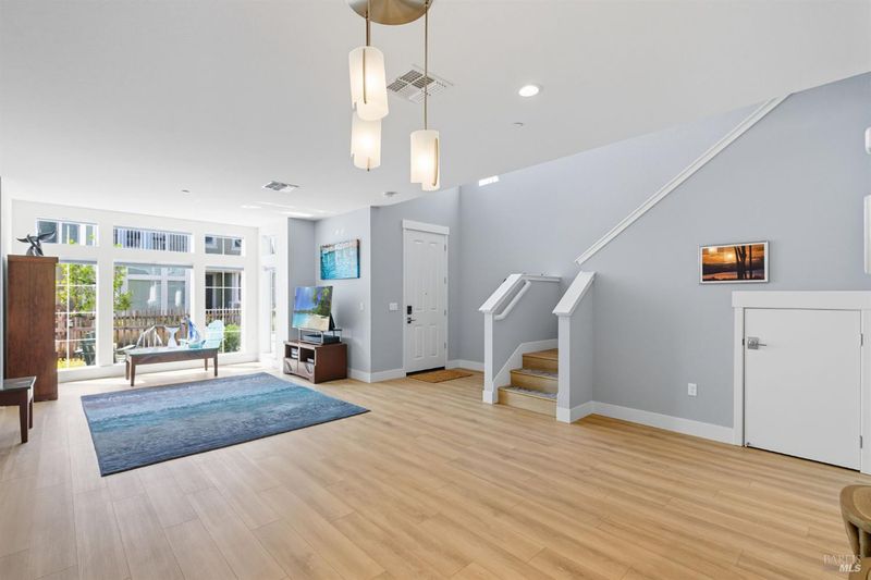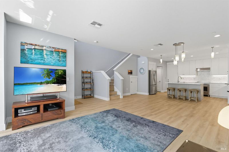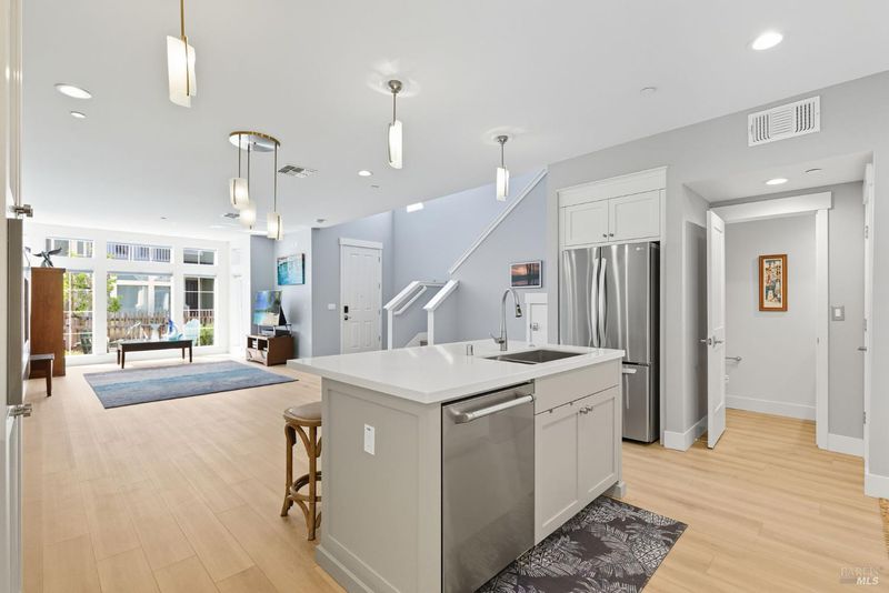This contemporary 3-bedroom, 2.5-bath townhome truly has it all. Recently constructed in 2023, it offers the best of modern design. Soaring ceilings, an open-concept floor plan, abundant natural light, and stylish finishes throughout. The chef's kitchen is equipped with premium appliances and a large island that seamlessly connects to the dining and living areas, perfect for both everyday comfort and entertaining. Upstairs, a luxurious primary suite provides a private retreat, complimented by two additional bedrooms that offer flexibility for family, guests, or a home office. The gem includes a spacious 2 car garage and owned solar. Step outside and enjoy the best of Marin's indoor-outdoor lifestyle, there is a sweet front garden area, and you're steps away from walking paths along the bay. The Strand community offers a truly unique setting, nestled by the marina with stunning views, while being just minutes to hiking trails, Andy's Market, and vibrant downtown San Rafael. Whether strolling along the waterfront, launching a kayak, or commuting with ease to San Francisco, this home offers the perfect balance of tranquility and convenience.