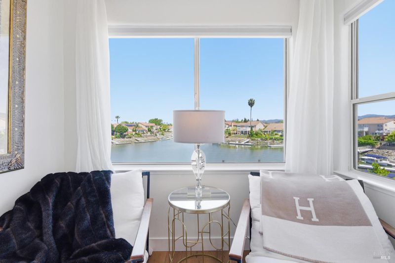 Meticulously updated and effortlessly elegant, this exceptional waterfront residence offers refined living in one of Napa Valley's most coveted gated communities. Spanning approximately 2,129 square feet, the home features four bedrooms, one thoughtfully reimagined as a stunning dressing room/closet and 2.5 beautifully appointed baths, all maintained with the highest level of care. Designed to embrace its remarkable setting, the home showcases a seamless, light-filled layout where the kitchen, dining, and living spaces all open gracefully to the water. Walls of glass frame panoramic views of the rolling hills, and unforgettable sunsets, creating a constant connection between indoor comfort and outdoor beauty. Step outside to your private waterfront retreat, complete with a newer boat dock and multiple seating areas ideal for entertaining, relaxing, or simply savoring the tranquility of the Napa River. Whether enjoying morning coffee by the water or hosting sunset gatherings, every moment here feels elevated. Upstairs, a serene and private primary retreat offers a peaceful escape, perfectly separated from the home's social spaces below. Ideally positioned for both privacy and sweeping vistas, the property invites a true resort-style lifestyle. From your own dock, cruise to downtown Napa for lunch or dinner, or venture farther along the river to the San Francisco Bay. Kayaking, paddleboarding, and boating become part of everyday life. Located within the prestigious Napa Yacht Club and just about an hour from San Francisco, this rare offering blends luxury, lifestyle, and location perfect as a primary residence or an exquisite Wine Country getaway
