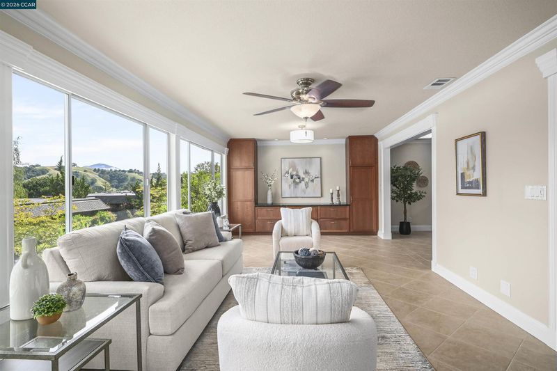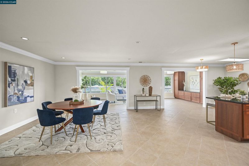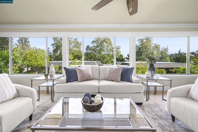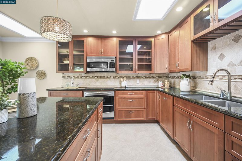 JUST REDUCED AND STAGED in the amazing community of Rossmoor. This is a nicely updated Two Bedroom, Two Bath Condominium that offers 1536 square feet of very open living space. The unit has been impeccably maintained with an emphasis on high quality and detail. The Electrical has all been updated and the unit has been opened up dramatically for a more efficient use of the space. You enter the home through a Custom Front Door featuring a glass insert. There are no stairs of any kind here. You are welcomed by a very unique Open Floor Plan highlighted by a Large Kitchen/Family Room as well as an Oversized Sun Room. The kitchen has been updated with a Center Island and Granite Countertops. There’s Custom Lighting here as well as lots of Natural Light provided by Two Skylights. The wood cabinets have been updated featuring glass doors. The Dishwasher, Oven and Microwave are all G.E. Profile. The Family Room is very spacious and can accommodate almost any lifestyle. The Stunning Tile Floors have had very little usage and have been maintained to look like new. The Sun Room is an amazing versatile space with views of Mt. Diablo. The Two Bedrooms are both very spacious featuring Crown Moldings and Plantation Shutters. The unit also offers a Stackable Kenmore Washer/Dryer.