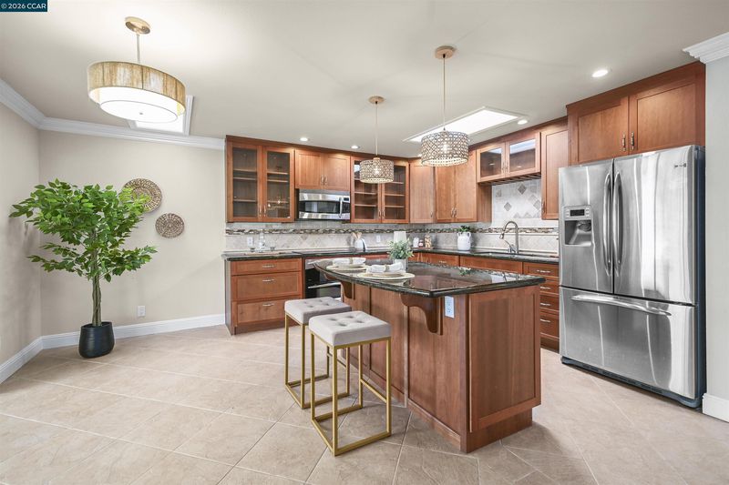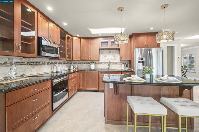 Dishwasher, Electric Range, Microwave, Range, Refrigerator, Dryer, Washer, 220 Volt Outlet, Stone Counters, Eat-in Kitchen, Electric Range/Cooktop, Kitchen Island, Range/Oven Built-in, Skylight(s), Updated Kitchen