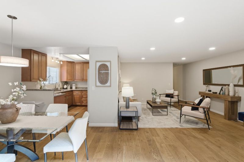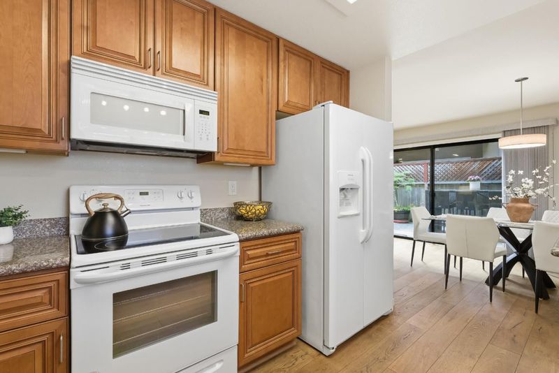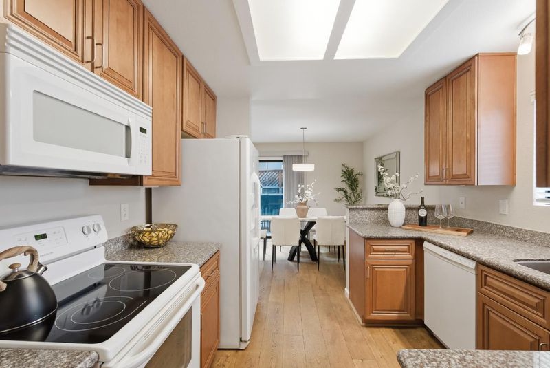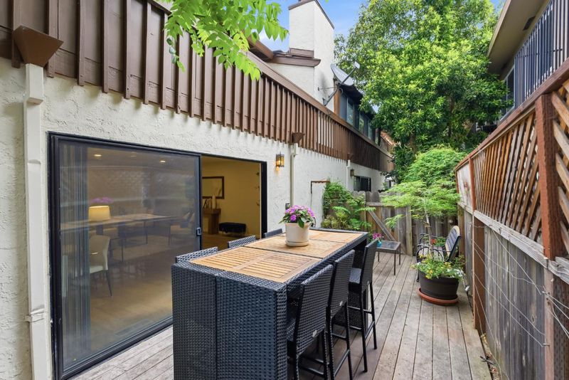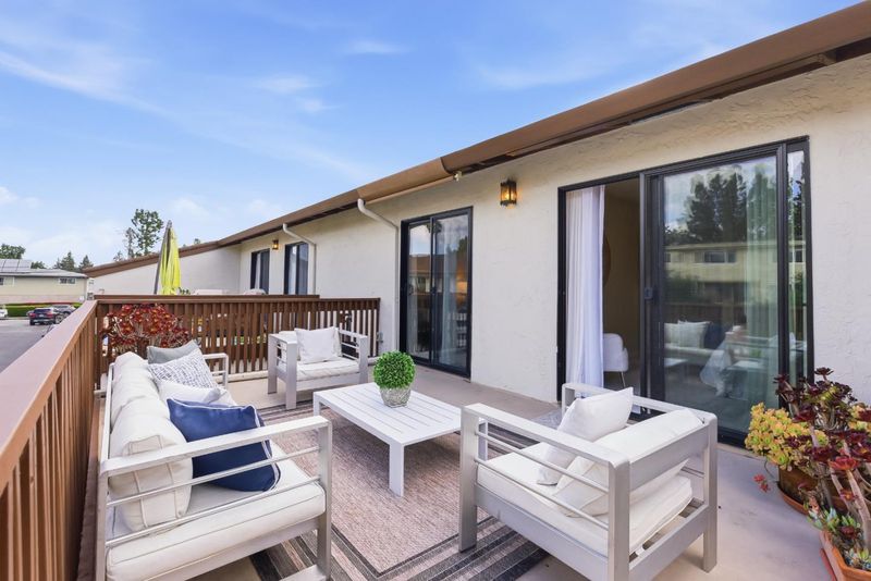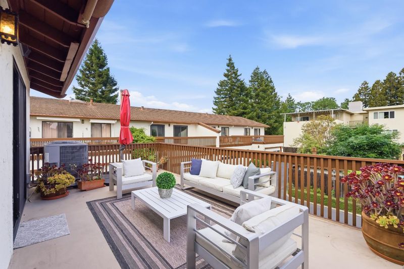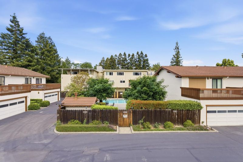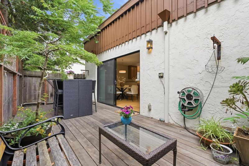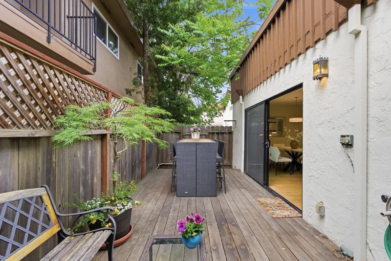Look no further! Tucked into a quiet corner of a Spanish-style townhome community, this exceptional end-unit offers the perfect blend of privacy and charm. Featuring 3 bedrooms, 2.5 bathrooms, and approximately 1,585 sq ft across two levels, plus an attached 2-car garage, this home truly stands out. With just 17 residences, the community provides a rare sense of tranquility. The main level showcases an open-concept floor plan with rich engineered hardwood flooring, a welcoming living room with fireplace, a dedicated dining area, and a well-appointed kitchen. A powder room and direct access to a private backyard patio make this level ideal for both everyday living and entertaining. Upstairs, the impressive primary suite features three closets and its own serene private deck. Two additional bedrooms open to a spacious, sun-drenched deck above the garage, creating seamless indoor-outdoor living. The attached garage includes built-in shelving for ample storage along with a convenient laundry area. Just steps away, the community pool offers the perfect retreat on warm summer days. Convenient mid-peninsula location, with Caltrain just a short distance away, this home truly has it all.