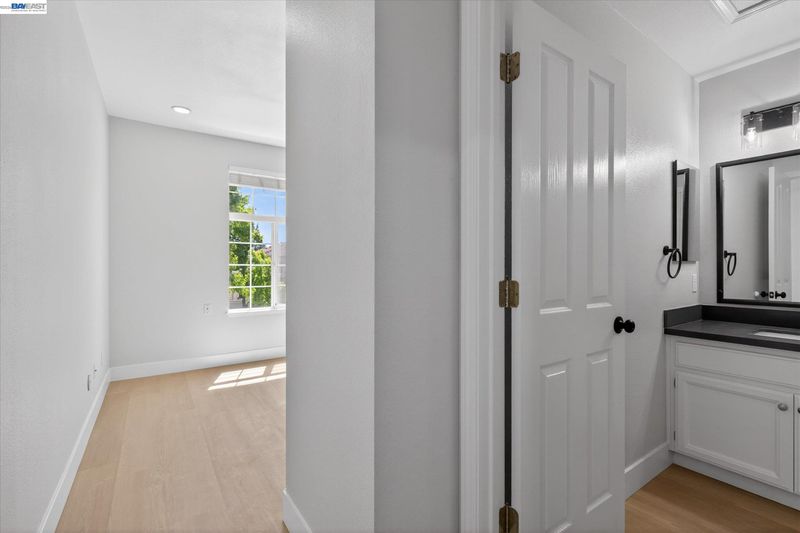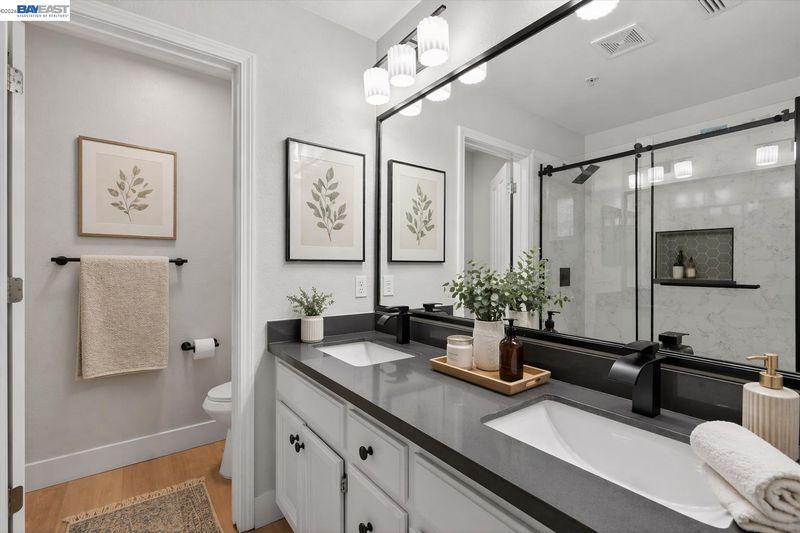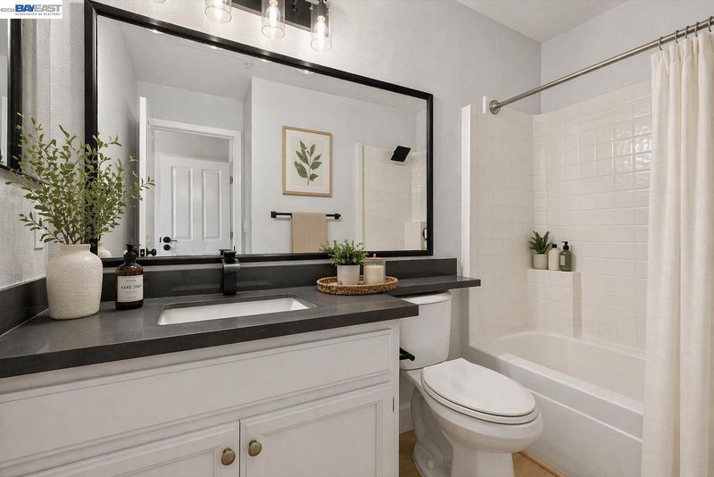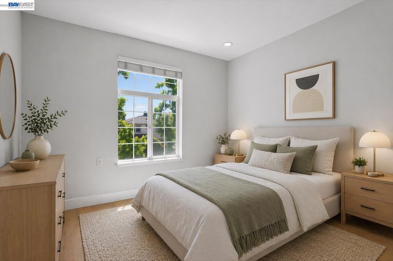 Northeast-facing and fully renovated, this bright and airy end-unit townhouse offers exceptional privacy with no rear neighbors and a prime court-front location in the desirable Siena community. Featuring two spacious bedroom suites, 2.5 baths, and a two-car attached garage with extra storage, the home has just undergone $60,000 in upgrades, including brand-new flooring, fresh interior and cabinet paint, updated lighting, a new dining and foyer chandelier, and beautifully remodeled bathrooms—highlighted by a modern primary suite with a walk-in shower and dual vanities. The open-concept main level showcases a large living room flowing into the dining area and a well-appointed kitchen with granite countertops, full backsplash, stainless steel appliances, a gas cooktop, and bar seating, plus a convenient powder room and laundry closet. Step outside to a low-maintenance stamped concrete backyard, perfect for indoor-outdoor living. Upstairs, enjoy additional storage on the landing, a spacious primary suite with high ceilings and walk-in closet, and a secondary en-suite bedroom. Residents benefit from top-rated Pleasanton schools and HOA amenities including a pool, spa, clubhouse, tennis courts, trails, parks, and security patrol. Ideally located within walking distance to BART, Iron Horse Trail, and nearby parks, and just minutes from Hacienda Business Park and shopping destinations like Whole Foods and Regal Cinemas, this move-in-ready home combines comfort, style, and convenience.
