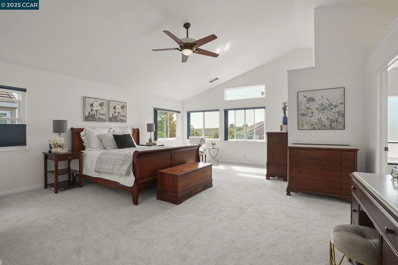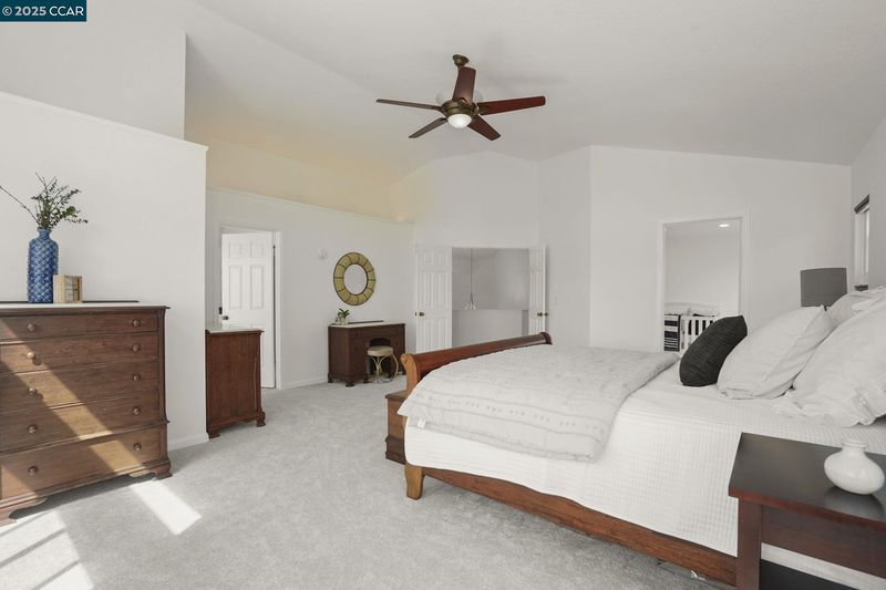 House was Originally 6 bedrooms, Buyer could convert into a 4, 5, or 6 Bedroom. Add a closet to office on the ground floor to have 1 full bedroom and 1 full bathroom on the main level. This spacious, well-maintained 2-Story home offers 3 bedrooms, 3 bathrooms - plus a potential for 3 more bedrooms! With soaring high ceilings and thoughtful updates throughout, this home is perfect for families or anyone needing flexible space. Kitchen/Family room combo, New Carpeting throughout in a neutral color and tastefully updated Primary ensuite with dual sinks, soaking tub and beautiful walk-in closet with built-ins and organizers. Updated hall bathroom in clean, neutral tones. Step outside to a private, hardscaped backyard patio complete with charming white pergola - This outdoor space is perfect for entertaining or unwinding in your own outdoor retreat.