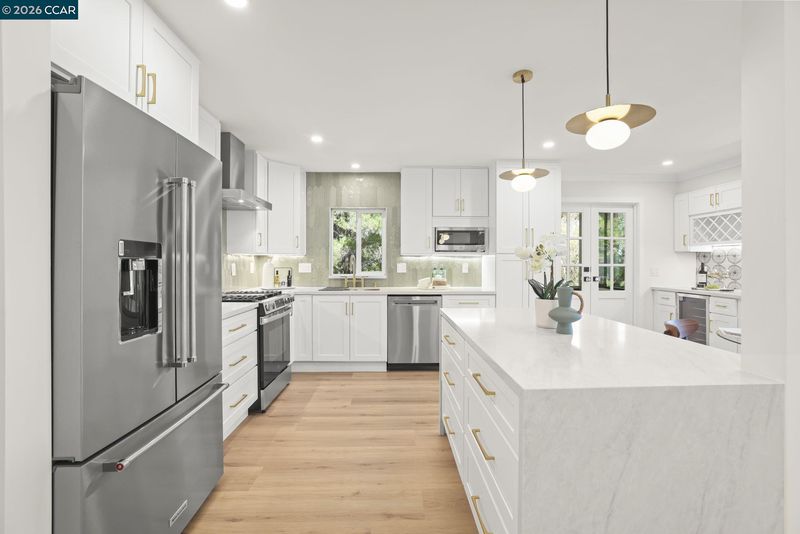 Welcome to this beautifully reimagined Sonoma Wrap floor plan in the sought-after Rossmoor community! Thoughtfully redesigned with high-end finishes and modern sophistication throughout. This completely remodeled residence offers a seamless blend of style and comfort featuring an open-concept layout including 2 beds and 2 baths ideal for both everyday living and entertaining. The chef-inspired kitchen showcases premium appliances, ease of functionality, and thoughtful details to include a pot filler at the gas range stove/oven and so much more. Custom cabinetry, sleek quartz countertops with waterfall edging, tile back splash, wine fridge, pantry cabinetry and more flowing effortlessly into the spacious living and dining areas filled with natural light. Every detail has been carefully curated—from upgraded flooring and contemporary lighting to elegant bathrooms with luxurious finishes. Improved dimmer lighting throughout as well as ceiling fans and plenty of USB compatible outlets. The wraparound design enhances privacy and functionality, offering well-appointed living spaces and a versatile layout to suit a variety of lifestyles. The primary suite serves as a tranquil retreat, complete with a spa-like bathroom and refined touches involving heated floors, lighted vanity mirror and even a towel warmer rack! Located in a desirable community, this turnkey home provides the perfect balance of upscale living and convenience. A rare opportunity to own a fully renovated Sonoma Wrap model with exceptional quality and design. Rossmoor is a premier community offering golf, swimming, fitness center, tennis, pickleball, clubhouse activities, dining, and more. Experience resort-style living in a vibrant, active adult community!