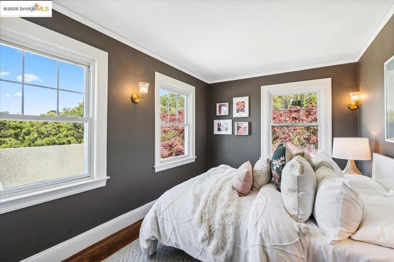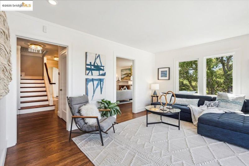 Rare opportunity to own a tranquil hillside 5 bedroom,4.5 bathroom estate with an additional 1/2+ acre separate parcel (>$200k value) Two APNs totaling 1+ acre compound! Bay views, a truly park-like setting offers a retreat mere steps from the bustle of Oakland's parks and recreation. Recent $250k+ remodel for multi-generational living, this elegant home boasts approximately 3,191 square feet. The primary suite is a true sanctuary, complete with private viewing deck, perfect for sun-bathing, yoga or quiet reflection. The home’s ideal layout includes four beds, two baths on the upper level, while the main floor features formal living, dining, a spacious kitchen with a large five ft island with built in cabinets and drawers for work station or informal dining, TV family room opening to a large outdoor deck—perfect for entertaining. The lower level offers a private au pair suite with sep entrance, 1 bed, 1 bath, kitchenette, and laundry room. Additionally, a separate 371-square-foot art studio, work out room, workspace potential for a guest house. In total, the property provides 3,434 square feet of versatile living space with room to build a second home for a family compound or rental unit. Rockridge Bart, Hwys 13, 580, 24. Joaquin Miller, Head Royce, Montclair, Redwood Heights