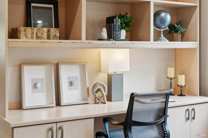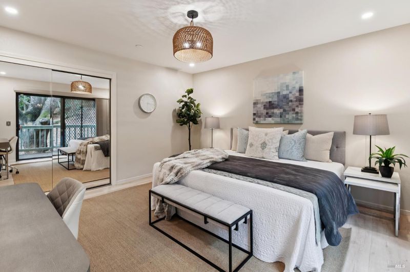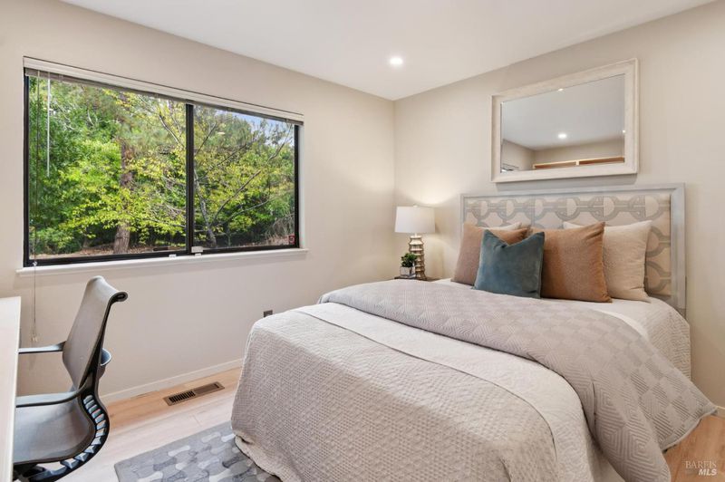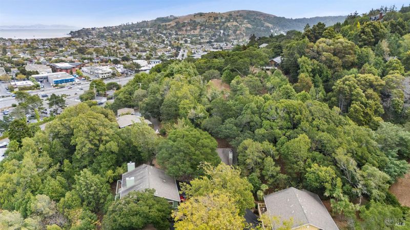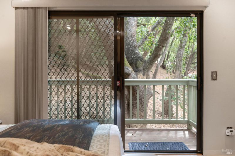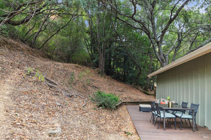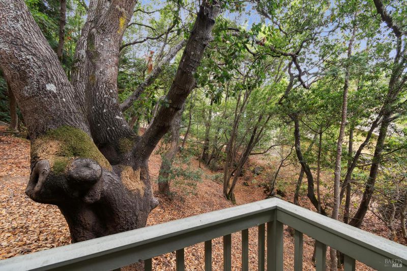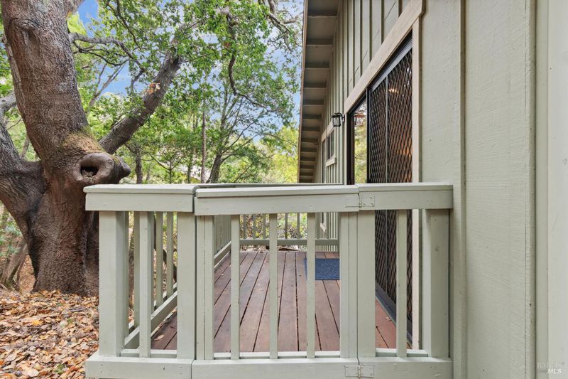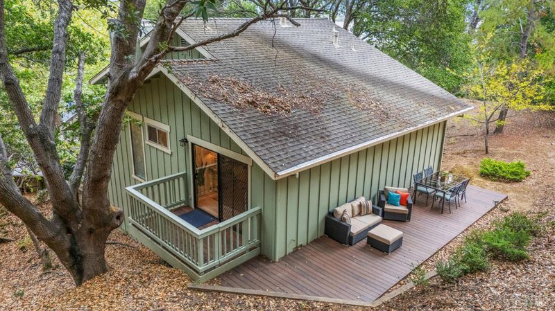 Ultra private, this fully-detached stand alone townhouse is nestled among the trees in the Quarry Meadows PUD community. Located at the end of a cul-de-sac, the nearest neighbor is 35-feet away, with only forest to the back and one side. Inside, the contemporary home is bright and inviting, with lots of windows and greenery outlooks. The spacious living room is warmed by a cozy fireplace, while the living room and dining area open onto a large front deck. The updated kitchen has stainless appliances and great natural light. The spacious primary bedroom with ensuite bath, opens onto a private deck. That deck wraps around to a third patio/deck facing peaceful open space. The second bedroom has built-in office cabinetry where you can work in a tranquil setting listening to the rustling trees. There is a second full bath and ample closet space. The 2-car attached garage with interior access has an abundance of built-in storage. Ideally located near award-winning schools, the Corte Madera Library, Peet's, and the restaurants and shops of Corte Madera Town Center and the Village.