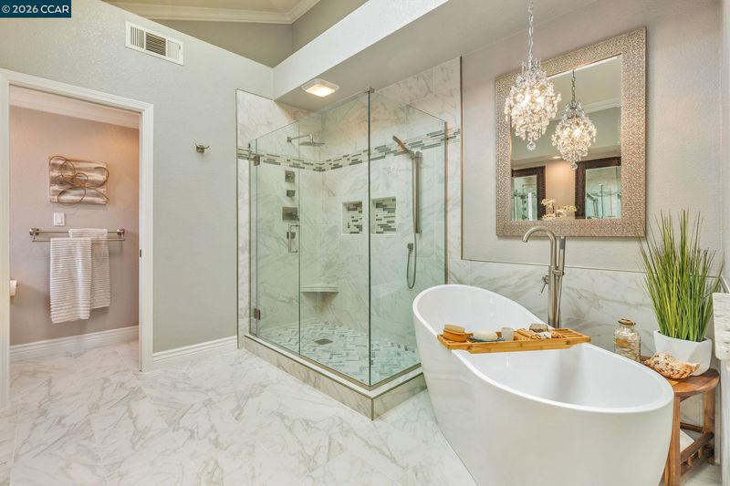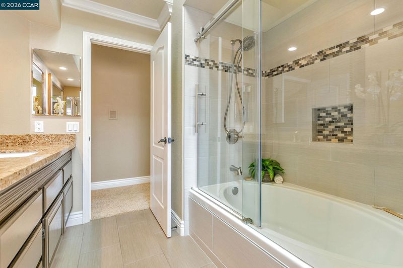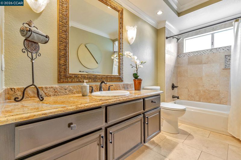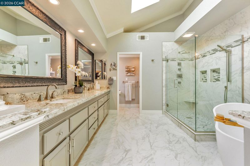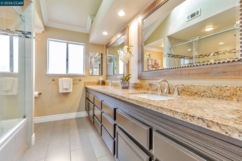 - Shower Over Tub, Skylight(s), Tile, Updated Baths, Double Vanity, Granite, Window