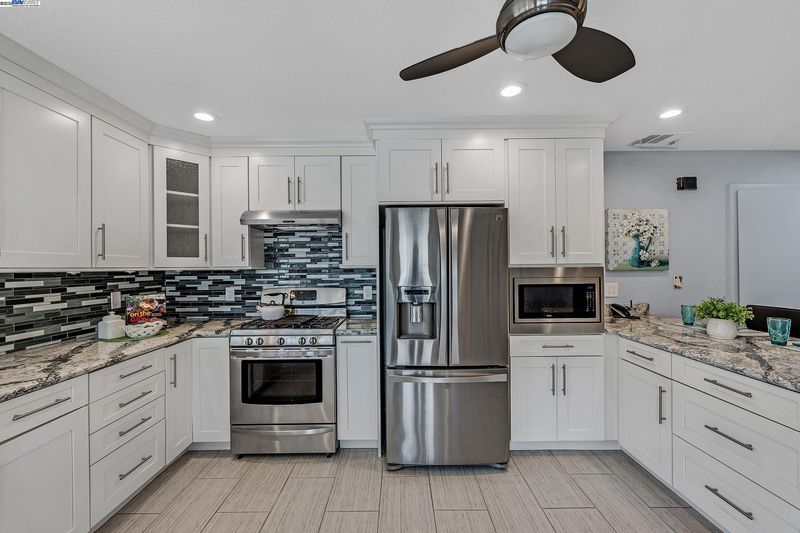 Beautifully updated 4 br. 2 ba. home. Freshly painted bedrooms and baths. Primary bedroom with attached bath and slider to private rear patio, perfect for a hot tub. Remodeled kitchen with white cabinets, stunning black, grey & white granite countertops. Flooded with natural light from the dining area skytube. SS Appliances all stay including the refrigerator. New garbage disposal. Dramatic livingroom with vaulted ceilings, skytube and freplace. Newer laminate wood flooring in livingroom and bedrooms and wood look tile in entry, dining area and kitchen. New furnace & water heater 2025. Roof clearance. Covered outdoor living area accessed from the dining/kitchen area slider. Enjoy the Large and low maintenance rear yard with 2 areas for entertaining, artificial grass, large storage shed and side yard with gate. Truly a wonderful family home. Pioneer Elementary, Itliong-Vera Cruz JHS and Logan High School. E_Z commute location close to 880, Dumbarton & BART.