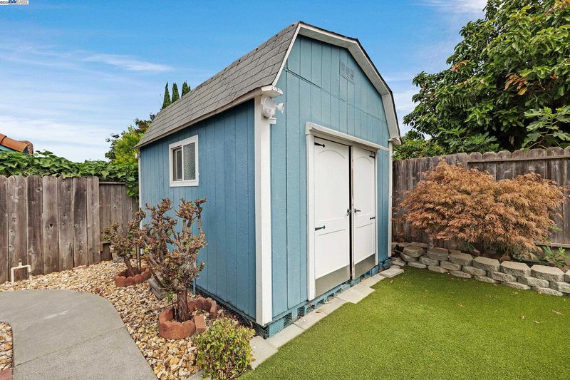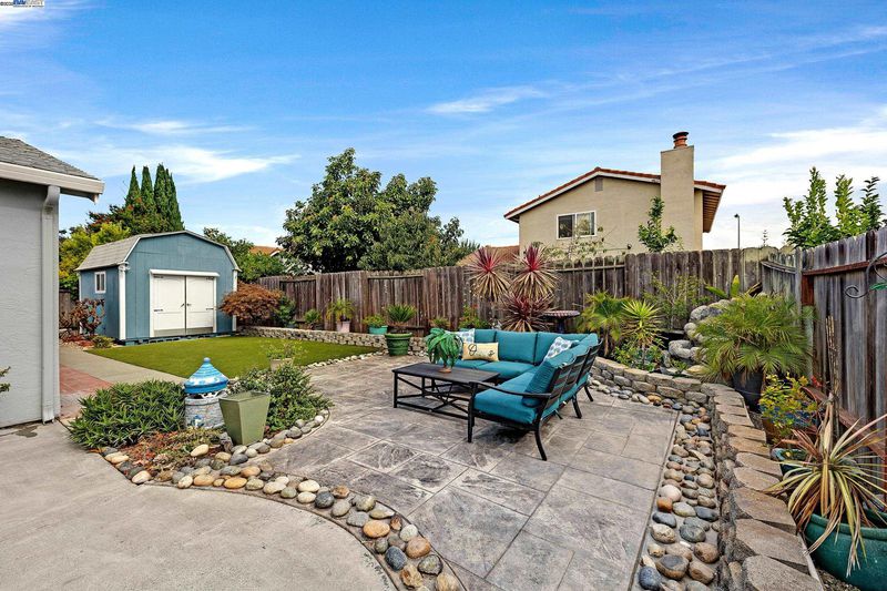 Beautifully updated 4 br. 2 ba. home. Freshly painted bedrooms and baths. Primary bedroom with attached bath and slider to private rear patio, perfect for a hot tub. Remodeled kitchen with white cabinets, stunning black, grey & white granite countertops. Flooded with natural light from the dining area skytube. SS Appliances all stay including the refrigerator. New garbage disposal. Dramatic livingroom with vaulted ceilings, skytube and freplace. Newer laminate wood flooring in livingroom and bedrooms and wood look tile in entry, dining area and kitchen. New furnace & water heater 2025. Roof clearance. Covered outdoor living area accessed from the dining/kitchen area slider. Enjoy the Large and low maintenance rear yard with 2 areas for entertaining, artificial grass, large storage shed and side yard with gate. Truly a wonderful family home. Pioneer Elementary, Itliong-Vera Cruz JHS and Logan High School. E_Z commute location close to 880, Dumbarton & BART. Shopping and parks nearby. First Open house Sat 9-27 from 12-4 and Open Sun. 9-28 from 1-4