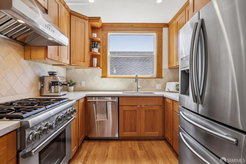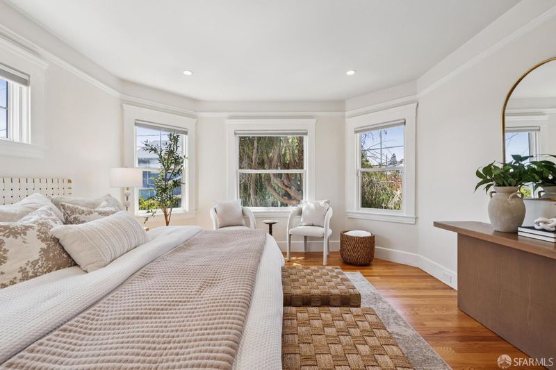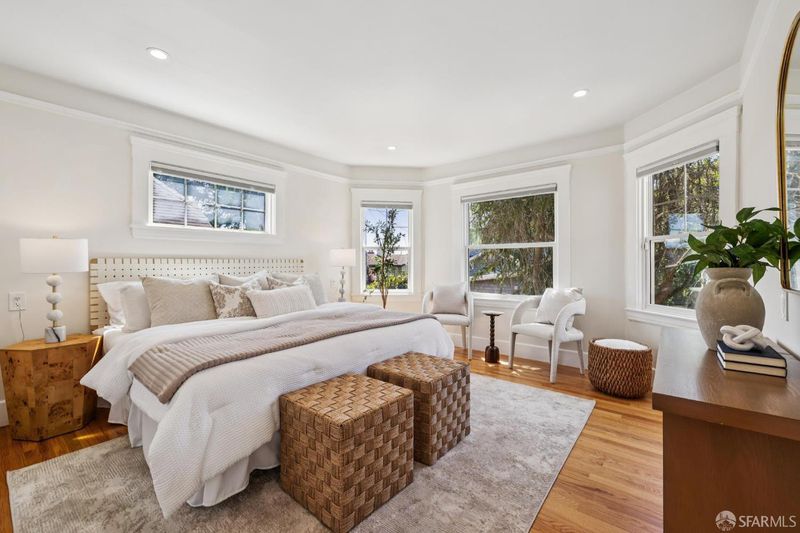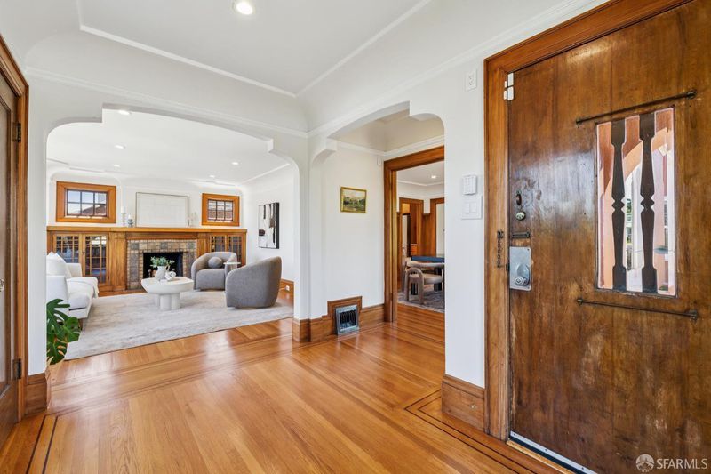 Located on a prominent corner lot in the highly desirable north side of Westwood Park, this beautifully preserved home blends timeless 1920s architecture with modern updates. From the moment you enter, you're immediately greeted by the home's warmth, natural light, and exceptional craftsmanship. The inviting living room, centered around a classic bay window and fireplace, flows seamlessly to the formal dining room, where rich gumwood wainscoting, a built-in buffet, crown moldings, and gleaming hardwood floors highlight the home's original character. The dining room's arched windows frame picturesque views that feel like a painting, adding to the home's charm and sense of flow. The tastefully remodeled kitchen is both stylish and functional, featuring stainless steel appliances, including a high end six-burner Thermador range and dishwasher, along with ample cabinetry and workspace. Two sunlit, well-proportioned bedrooms and a full bath complete the main level, including a primary suite with its own en-suite half bath. Also a cozy office just off the kitchen provides an ideal space for work or study. The expansive lower level offers remarkable versatility, with two additional bedrooms overlooking the garden, a fully remodeled bathroom, a stylish full kitchen and a spacious family room - perfect for entertaining, guests, or extended living. An exercise/yoga room complete this level. Outside, landscaped front gardens and a sunny, spacious backyard create an inviting setting for outdoor dining, relaxing, and gatherings. The spacious garage offers an EV Charging Station as well as ample storage. A rare combination of charm, flow, and functionality in one of the city's most beloved neighborhoods.
