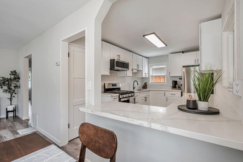 Beautifully RENOVATED Gem in San Lorenzo Village! Welcome to this stunning 3-bedroom, 1-bath home located in the highly sought-after San Lorenzo Village neighborhood. Ideally situated near shops, restaurants, parks, commute options and top amenities, yet tucked back from the street for added privacy and tranquility. Step inside and fall in love with the bright, open floor plan that seamlessly connects the living, dining, and kitchen spaces. Thoughtful designer touches are found throughout, including luxury vinyl flooring, newer dual-pane windows, and stylish lighting and plumbing fixtures. The fully renovated kitchen is a true centerpiece featuring updated cabinetry, elegant quartz countertops, and modern finishes that make both cooking and entertaining a joy. The spa-like bathroom offers sleek, contemporary upgrades. Enjoy the convenience of an indoor laundry as well as an attached garage that provides secure parking and valuable storage space. Discover an expansive, serene backyard perfect for summer barbecues, relaxing evenings, or a safe play space for kids and pets alike. This move-in-ready home combines designer style with everyday functionality in an easy access location. Don't miss your chance to own this beautifully updated San Lorenzo treasure!