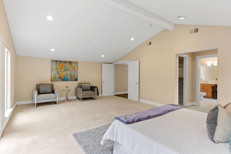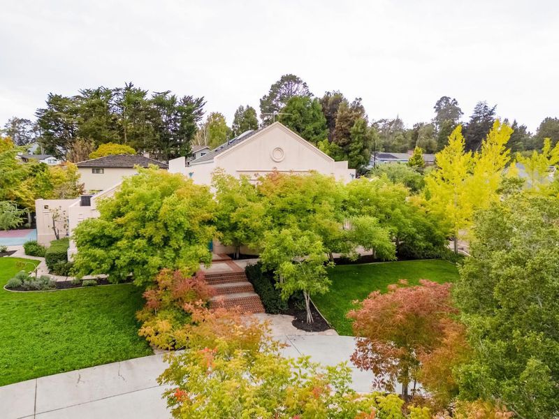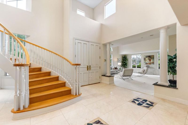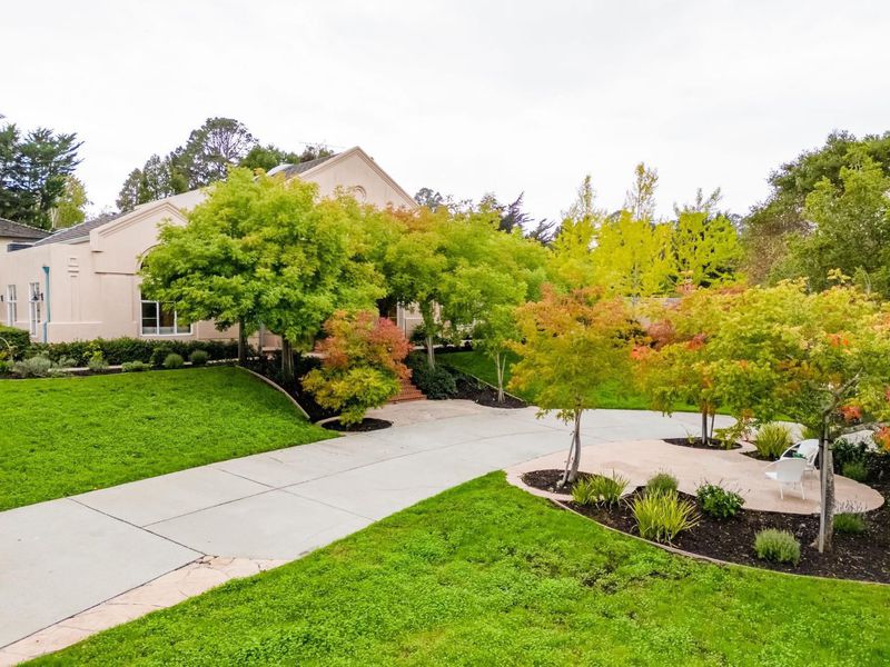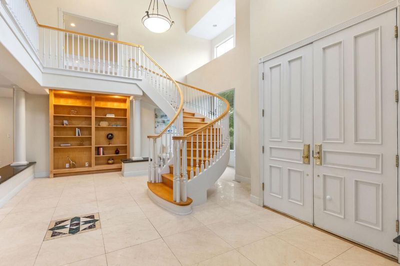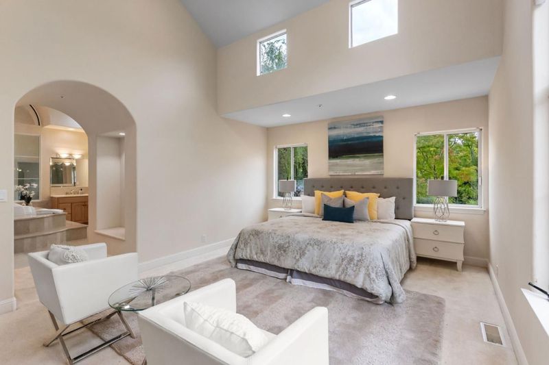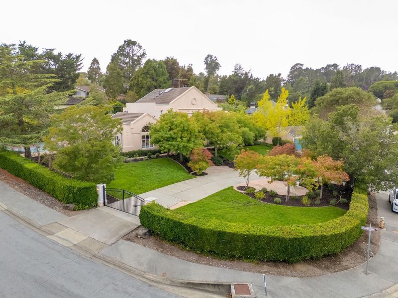 Exceptional private and gated estate on a rare 25,990 sq ft corner lot in Hillsboroughs most prestigious enclave. Elevated and secluded with lush landscaping, soaring trees, and a grand presence. Two luxurious primary bedroom suites on the main level feature spa-style baths with Jacuzzi tubs, glass showers, dual vanities, large walk-in closets, wet bars in the 2 masters bedroom and 1 in the family room, offering the ultimate in comfort and convenience. Ideal for multi-generational living or hosting in style. Dramatic foyer with high ceiling, sweeping staircase, elegant column accents, formal living and dining rooms, and a sun-filled family room with a built-in wet bar, perfect for entertaining. The gourmet kitchen boasts granite counters, high-end appliances, an island with a second sink, and a cozy breakfast nook. Upstairs offers an additional primary suite, a spacious loft, and a private balcony. Resort-inspired amenities include a rooftop lounge, private courtyard, sports court, detached three-car garage, and a gated driveway. A rare opportunity for luxury, privacy, and seamless indoor-outdoor living.