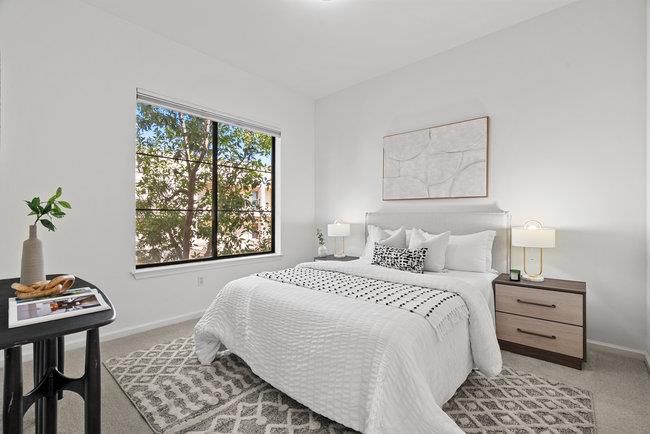 The Brickyard! Welcome to this freshly updated condo, featuring new carpeting & fresh paint throughout. With soaring 10-ft ceilings, oversized windows, and atrium-like feel,condo is filled with natural light & surrounded by tranquil views of mature trees. The desirable 3rd- floor location means you'll enjoy added privacy and a quieter living environment. Step outside your front door to enjoy a beautiful pool view, making every day feel like a retreat. The open-concept layout offers a spacious living area & a generously sized bedroom with YES, a walk-in closet. A large storage closet @ front door provides rare extra space for your Costco items, tools, & room for bicycles. Kitchen offers ample counter & cabinet space,& the convenience of in-unit laundry makes that chore a breeze. Brickyard means more than just owning a home; it's a lifestyle. Cool off in the pool & spa, stay active in the on-site fitness center, or unwind in the pool table rec-room. For remote work, there's multiple conference rooms. Work at,or close to,home. With secure underground parking, you can ditch the stress of street parking,coffee shops, breweries, restaurants, & parks all within walking. It's time to stop renting & start building equity in your own place. Cancel that gym membership, make Brickyard HOME.