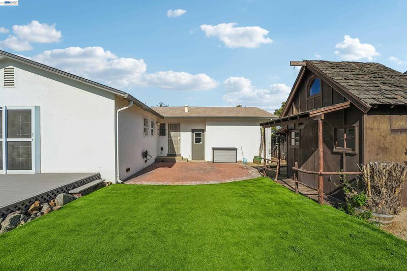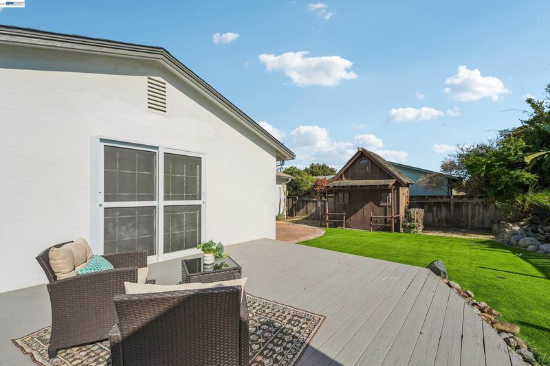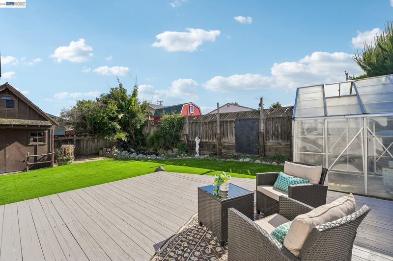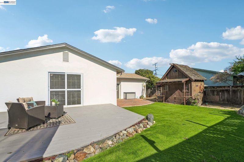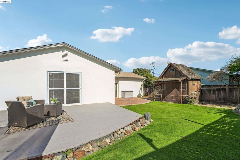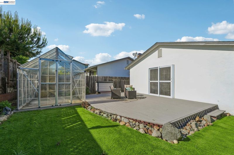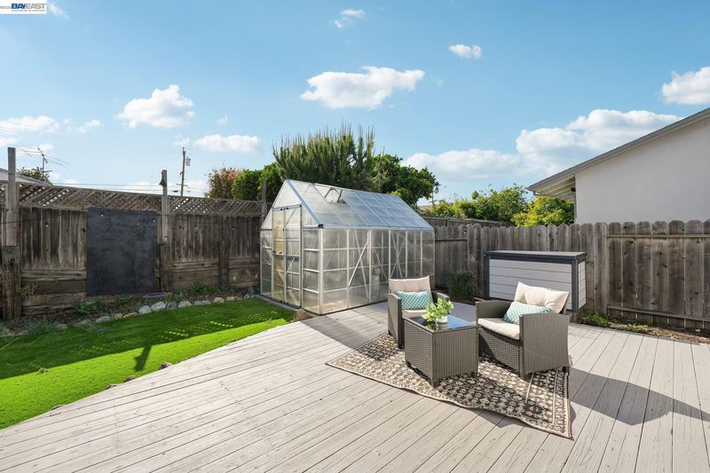 Welcome home to 24815 Townsend Avenue, a stunningly updated contemporary gem nestled in Hayward’s highly desirable Parkmead neighborhood! This beautiful single-story residence boasts 3 bedrooms, 2 bathrooms, and a bright, open-concept floor plan designed for both relaxing and entertaining. From the moment you step inside, you are greeted by an abundance of natural light, gleaming hardwood floors, and a spacious living room anchored by a cozy, classic brick fireplace. The layout flows seamlessly into the beautifully updated chef's kitchen, which features gorgeous stone countertops, a gas range, stainless steel appliances, and a generous dining area perfect for hosting family and friends. The private primary suite serves as a tranquil retreat, offering a thoughtfully designed en-suite bathroom and private sliding glass doors that open directly onto an expansive back deck. Two additional well-appointed bedrooms provide ample space and share a stylishly updated full hall bathroom. Step outside to discover your own private backyard oasis! The fully fenced exterior is a true entertainer’s dream, highlighting a massive deck ideal for al-fresco dining and summer barbecues. Gardeners and nature lovers will be captivated by the charming greenhouse, serene water feature, mature landscaping, and convenient storage sheds. Complete with an attached 2-car garage and a dedicated laundry area, this home leaves nothing to be desired. Enjoy an unbeatable location with incredibly convenient access to major commuter freeways, Hayward BART, local parks, Southland Mall, and a vibrant array of shopping and dining options. Don't miss the opportunity to make this turnkey Parkmead beauty your own!