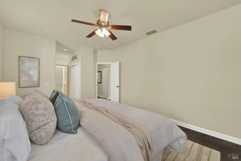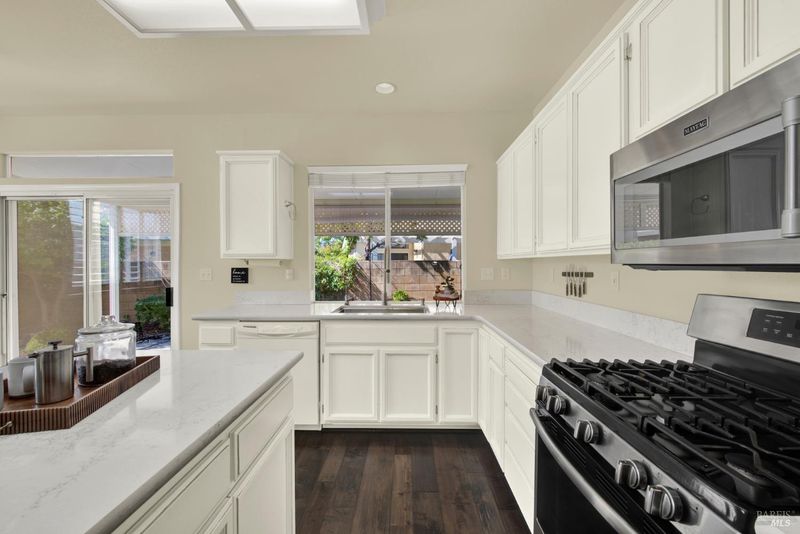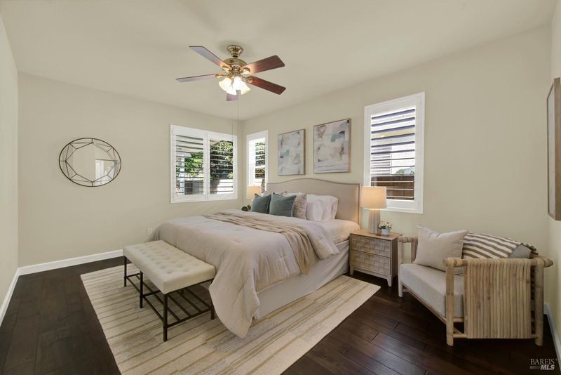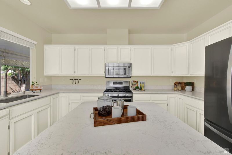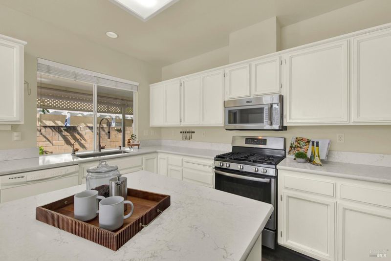 Welcome to this beautifully maintained and tastefully remodeled home in Diamond Grove, a prestigious gated 55+ community in Vacaville, where comfort, character, and convenience come together effortlessly. Overflowing with pride of ownership, this inviting residence offers two spacious bedrooms, two updated full bathrooms, and a versatile den perfect for a home office or hobby space or even a third bedroom! From the moment you step inside to discover an open floor plan bathed in natural light, highlighted by vaulted ceilings, plantation shutters throughout, and recessed lighting. Updated luxury wooden flooring flows seamlessly through the home, creating a warm and polished feel. The thoughtfully designed kitchen is a true center piece, featuring quartz countertops, white cabinetry, a center island with bar seating, and a sunny dining space, all complemented by stainless steel appliances including a gas range, microwave, and refrigerator. The generous primary suite is a peaceful retreat, offering vaulted ceilings, spacious dual closets, and a lovely en suite bath showcasing a dual-sinks and a stylish walk-in shower. The secondary bathroom features a step in tub and a contemporary vanity. An interior laundry room with cabinetry and sink adds everyday ease. Outside, enjoy both covered and uncovered patios, a turf area, and a tranquil garden with fruit trees. The stunning front exterior impresses with manicured landscaping, a stucco and brick facade, and a tile roof. Situated in a private corner of this gated community, enjoy access to a vibrant array of amenities including a pool, hot tub, bocce ball court, shuffleboard, and a full calendar of clubs & activities. The HOA covers front yard maintenance, exterior painting, roof upkeep, rain gutters, fences, security gate, and common area maintenance. Optional RV parking is available for a fee.