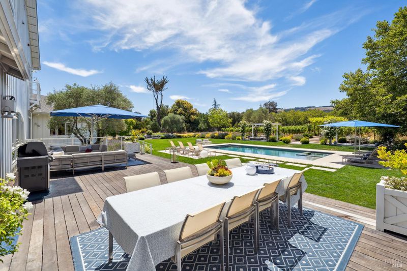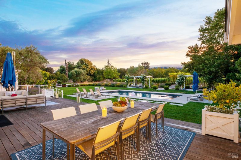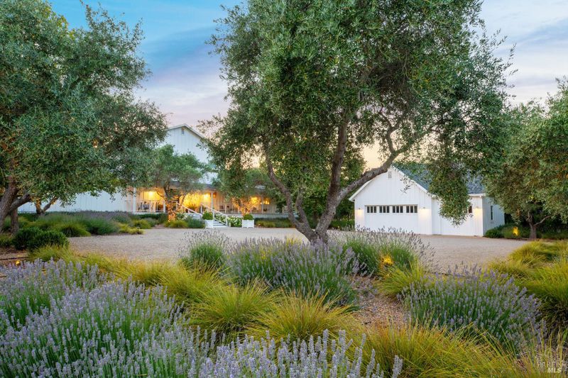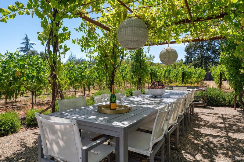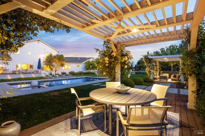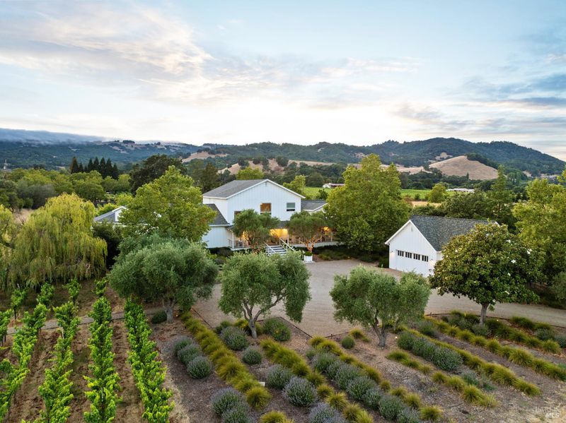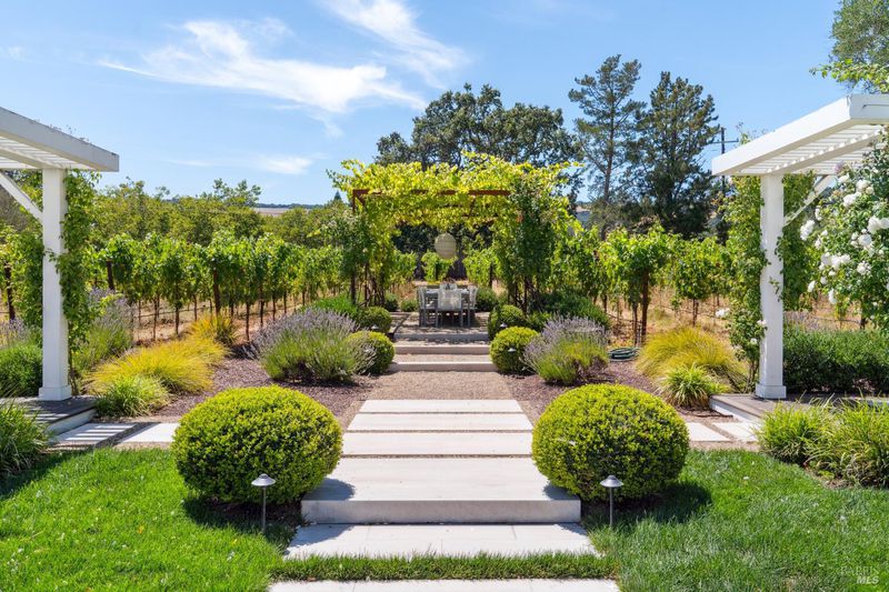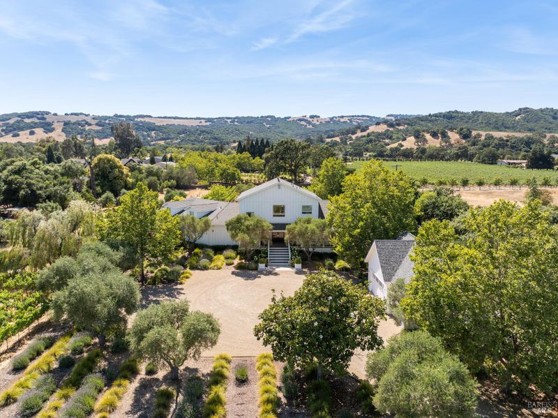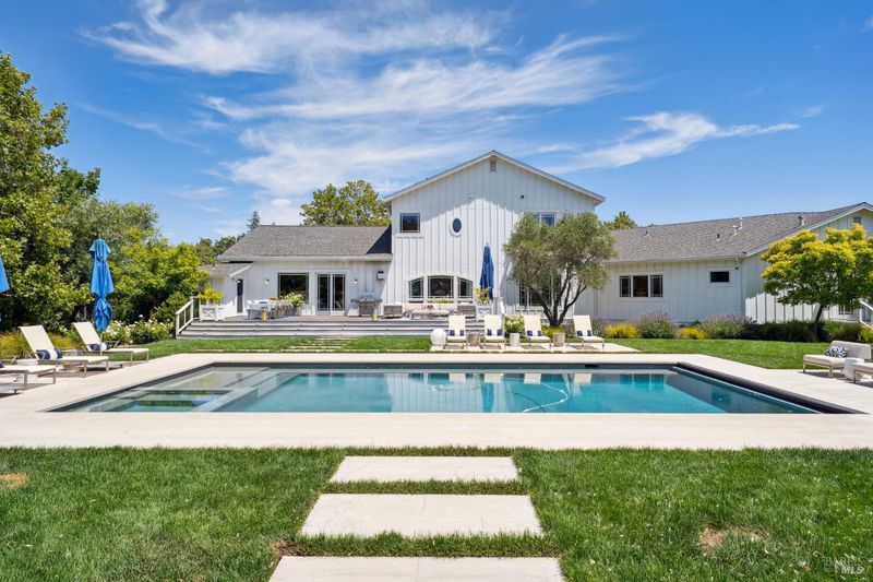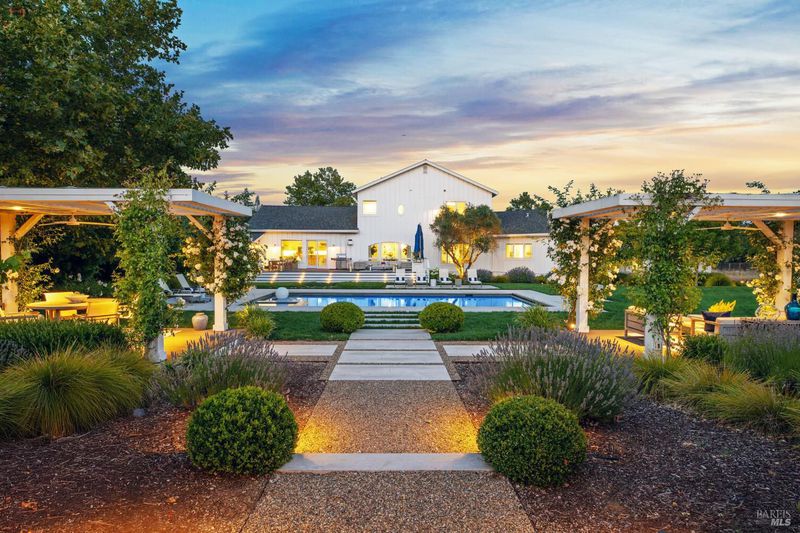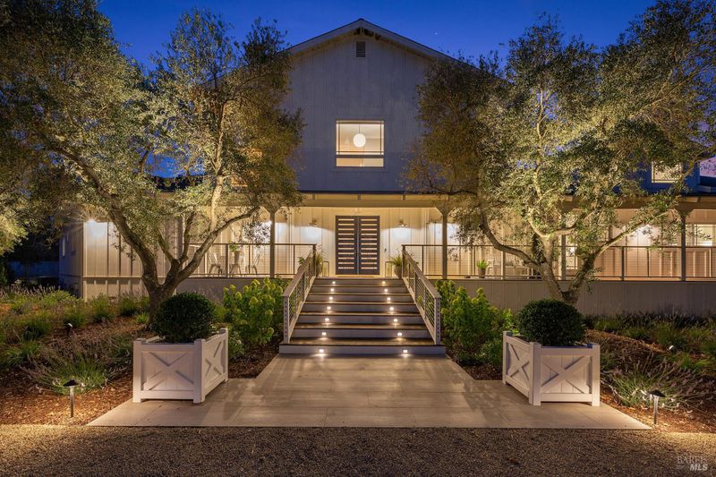 Set on 4.52 acres in one of Sonoma's most private prestigious enclaves, 1420 Grove Street offers a rare blend of refined architecture, vineyard beauty, and resort living just minutes from the Plaza and Sonoma Golf Club and only an hour from San Francisco. A vineyard and olive tree lined drive leads to the distinguished farmhouse with an iconic wraparound porch and walls of glass framing sweeping views of gardens, vines, and mountains. The home flows primarily on one level, centered by a dramatic great room and chef's kitchen with Viking range, Sub-Zero refrigeration, marble island, and walk-in pantry. All bedrooms are en-suite, while the upstairs primary retreat includes a sitting area, fireplace, study, soaking tub, walk-in shower, and expansive closet. Masterfully designed for entertaining, the grounds showcase a saltwater pool and spa, limestone patios, rose-covered arbors, sauna, raised beds, and a vine-draped dining trellis. A re-imagined barn offers an en-suite bedroom, gym, storage and entertaining space, while a three-car garage with EV charger, large solar system, backup generator, and dual gated entries ensures modern ease and security. Elegant, serene, and created for memorable gatherings, this distinguished estate captures the essence of Wine Country living