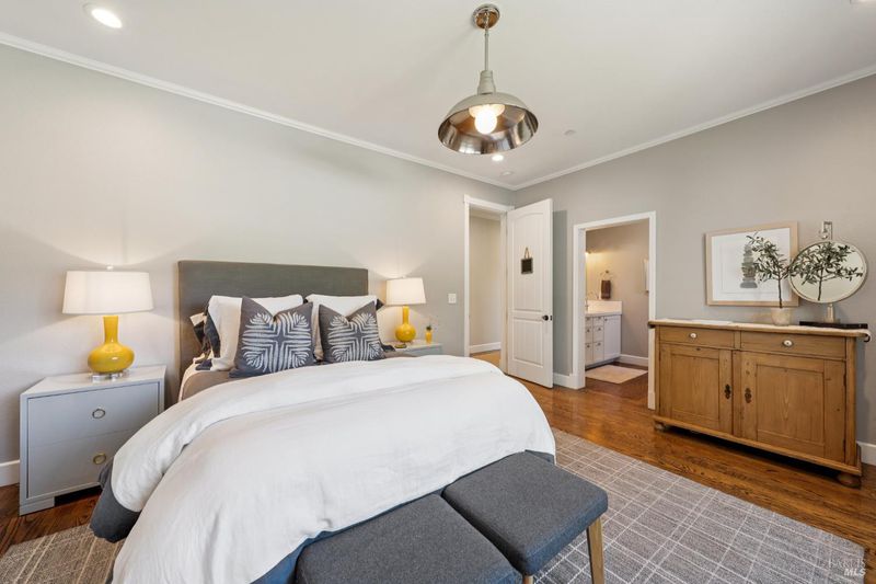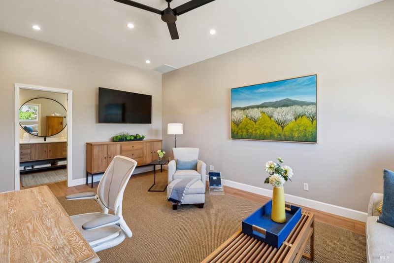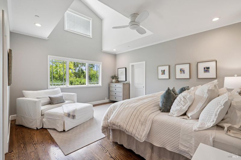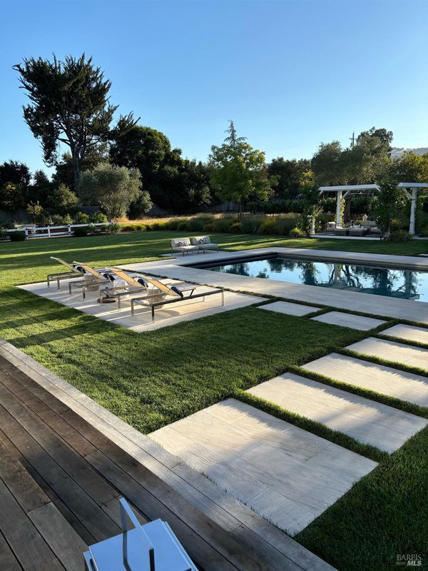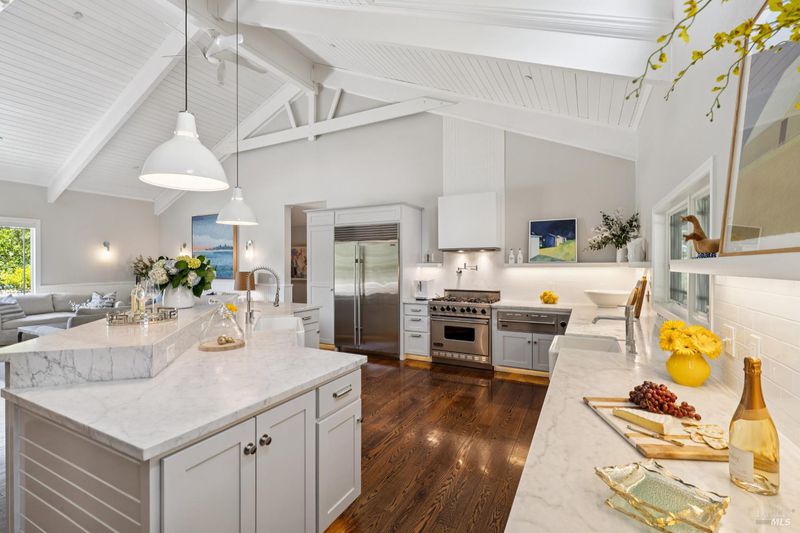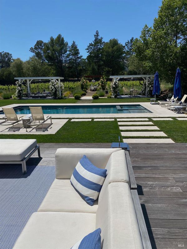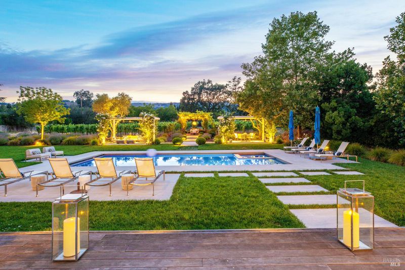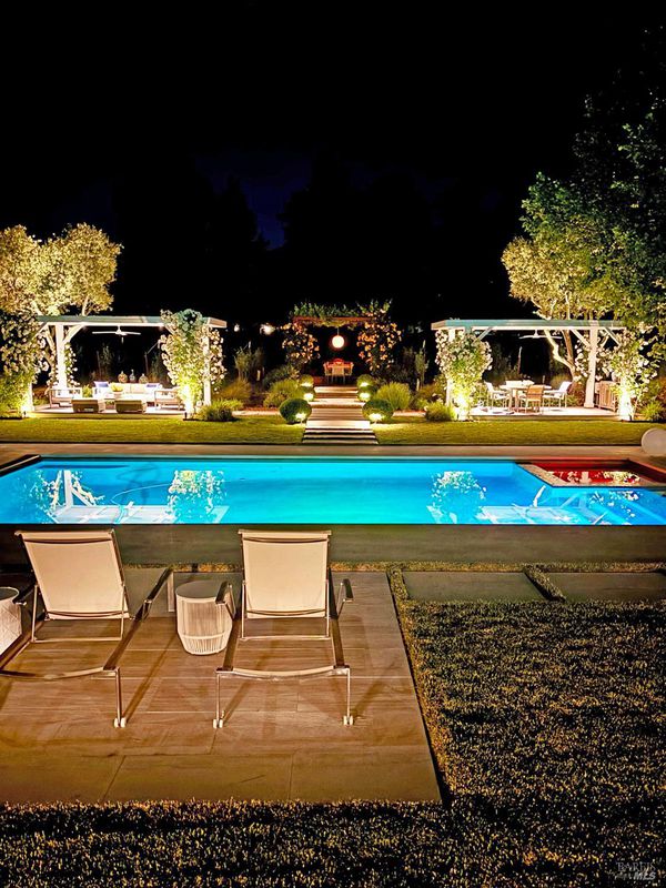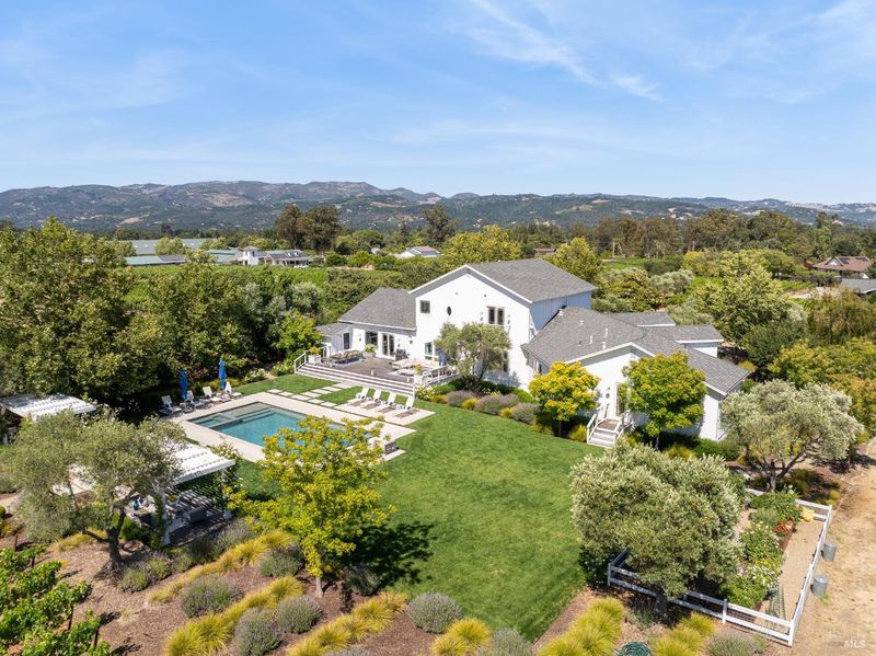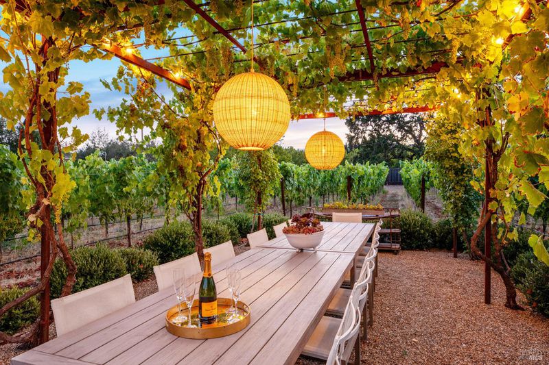 Set on 4.52 acres in one of Sonoma's most private prestigious enclaves, 1420 Grove Street offers a rare blend of refined architecture, vineyard beauty, and resort living just minutes from the Plaza and Sonoma Golf Club and only an hour from San Francisco. A vineyard and olive tree lined drive leads to the distinguished farmhouse with an iconic wraparound porch and walls of glass framing sweeping views of gardens, vines, and mountains. The home flows primarily on one level, centered by a dramatic great room and chef's kitchen with Viking range, Sub-Zero refrigeration, marble island, and walk-in pantry. All bedrooms are en-suite, while the upstairs primary retreat includes a sitting area, fireplace, study, soaking tub, walk-in shower, and expansive closet. Masterfully designed for entertaining, the grounds showcase a saltwater pool and spa, limestone patios, rose-covered arbors, sauna, raised beds, and a vine-draped dining trellis. A re-imagined barn offers an en-suite bedroom, gym, storage and entertaining space, while a three-car garage with EV charger, large solar system, backup generator, and dual gated entries ensures modern ease and security. Elegant, serene, and created for memorable gatherings, this distinguished estate captures the essence of Wine Country living