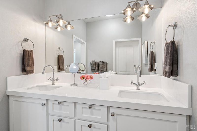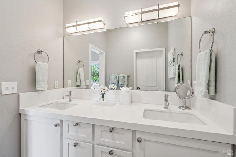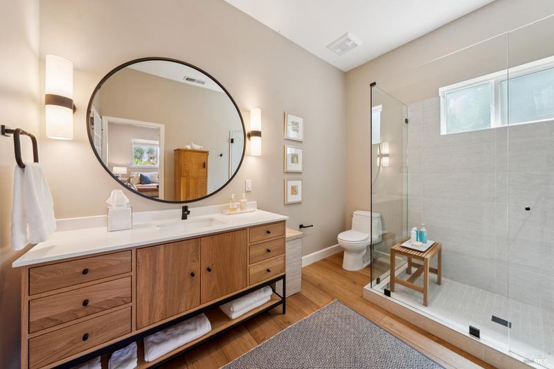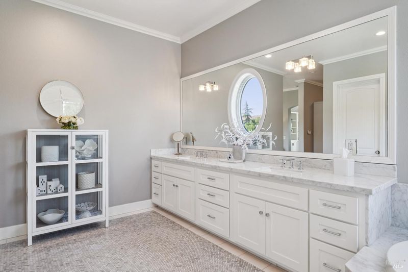 - Double Sinks, Marble, Multiple Shower Heads, Shower Stall(s), Tile, Tub, Walk-In Closet, Window