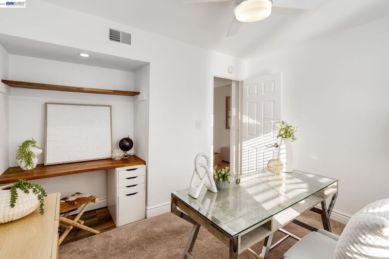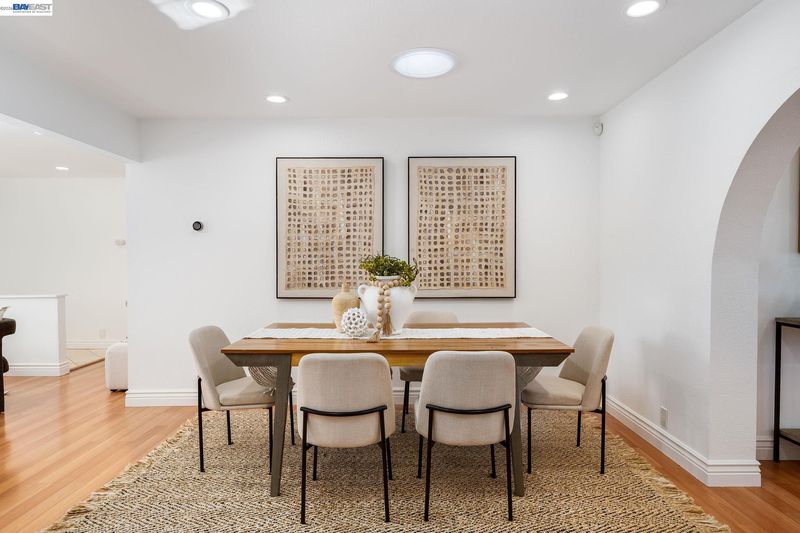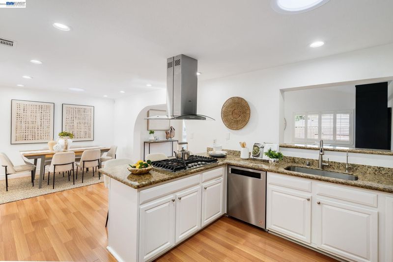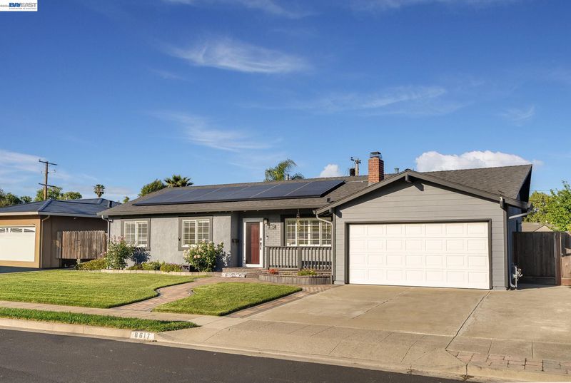 Everything's been done — just move in. This ~1,850 sq ft showstopper has been thoughtfully transformed from top to bottom, with Tesla solar, updated roof, and fresh interior & exterior paint delivering standout curb appeal and long-term efficiency from day one. Inside, the double living room layout is the heart of the home — a sophisticated sitting area with stone fireplace opens through an arched passage into a vaulted family room with plantation shutters and a dramatic built-in entertainment center. The open kitchen ties it all together with granite counters, stainless appliances, a 3-seat breakfast bar, and solar tubes that keep the space bright all day. The primary suite offers a massive walk-in closet, and the remodeled bathrooms impress with quartz counters and clean subway tile finishes. Out back, the private oasis delivers: custom high-end pavers, a sparkling updated pool, mature palms, and a large play area — built for weekend entertaining and everyday living alike. Walkable to top-rated schools at every level, parks, shopping, and the Iron Horse Trail. Easy access to I-580/I-680, Dublin BART, and tech bus pick-up locations — commuting has never been simpler.