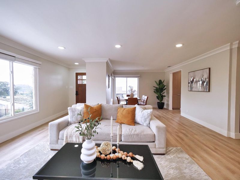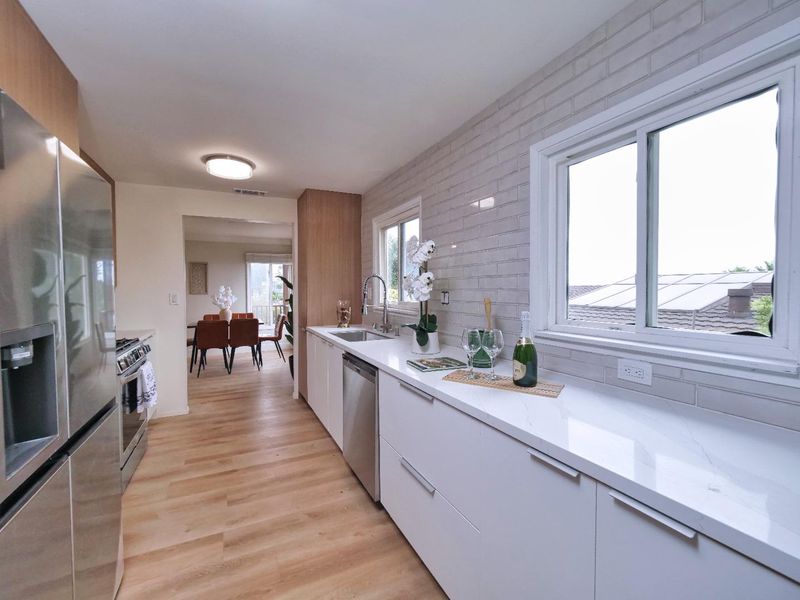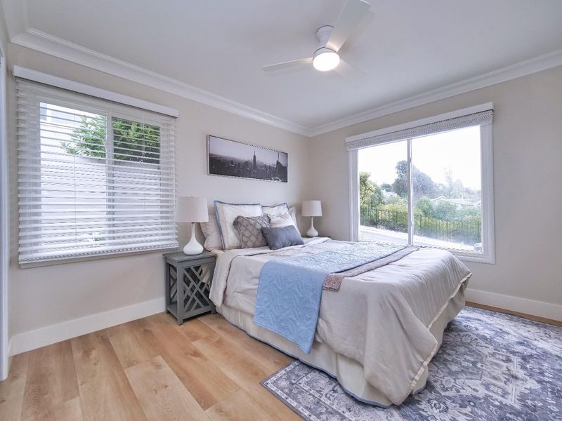 Location, location, location! 1659 sq ft main home plus 680 sq ft ADU, a total of 2339 sq ft of living space. This beautifully remodeled home is filled with natural light and offers breathtaking views throughout. The main house features 3 bedrooms and 2 full bathrooms, while the fully permitted ADU includes 1 bedroom, 1 full bathroom, air conditioning, and a private no-step entrance, perfect for potential rental income or multigenerational living. Enjoy a brand-new kitchen with custom cabinets and quartz countertops, newly renovated bathrooms, a new roof, and all new appliances. With two upgraded electrical panels, an open and inviting floor plan, and a 2-car garage, this home combines modern comfort with practicality. The ample, low-maintenance backyard features a relaxing hot tub, creating the perfect space for entertaining or unwinding at the end of the day.
