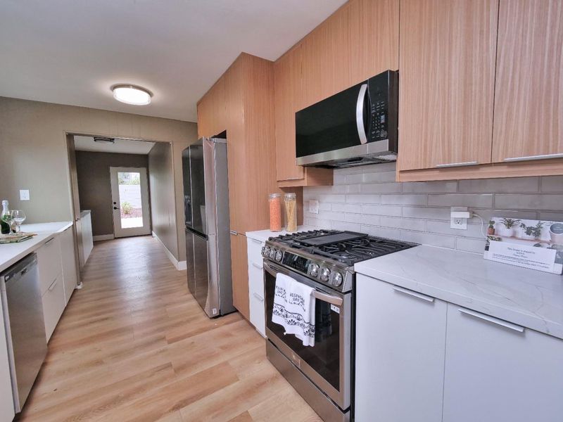 - Countertop - Quartz, Dishwasher, Garbage Disposal, Microwave, Oven Range - Built-In, Pantry, Refrigerator