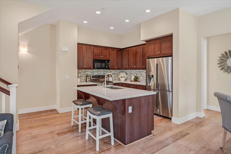 Rarely available corner townhome in the sought-after Classic Oro Loma community, offering the perfect blend of privacy, comfort, and Silicon Valley convenience. This beautifully maintained 3-bedroom, 3-bath home features a bright open floor plan with 10-ft ceilings, a gourmet kitchen with quartz countertops, stainless steel appliances, and a spacious living area that opens to a sun-filled balcony, ideal for entertaining. A versatile main-level bedroom and full bath provide flexibility for guests or a home office, while the luxurious primary suite boasts a walk-in closet and dual vanities. Enjoy a peaceful courtyard setting with no direct-facing neighbors, a 2-car garage with built-in storage, and in-unit laundry. Ideally located near top tech employers like Google and Microsoft, downtown Mountain View, parks, trails, and in close proximity to Highways 101 & 85. Top-rated Los Altos High School. This move-in-ready home offers low-maintenance living at its finest!
