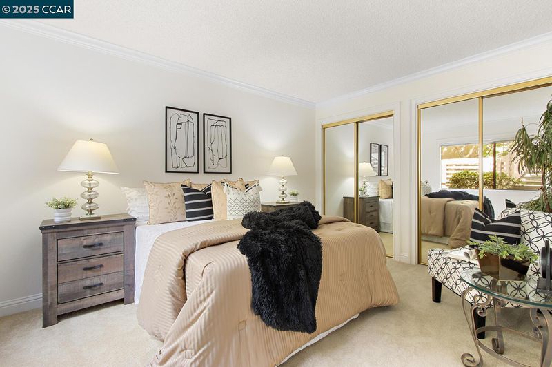 Welcome to a lovely Tamarisk condo in Rossmoor, the premier active-adult community in the Bay Area. This two bedroom, two bathroom property is one of the few homes in the community that has two dedicated parking spaces with both a detached garage and carport located just steps away from the front door. Another unique feature of this unit is the spacious ground floor patio that overlooks a serene park-like setting and views of the rolling Rossmoor hills. There is also a charming patio at the front entrance of the property, giving you multiple options for enjoying private outdoor living. Inside this two bedroom, two bathroom condo you'll discover many desirable features like the decorator wainscoting and sconces, gleaming hard-surface flooring, six-panel interior doors, and more. A new heating and air system was recently installed which means lower utility bills for you and greater energy efficiency. With just 5 steps to the front door the home is easily accessible but for those that can't manage stairs there is level-in entry available via a path to the side of the property leading to the private back patio. Lots of closets inside the home and a large loft in the garage provides an abundance of storage solutions. Move right in and start enjoying all Rossmoor has to offer!