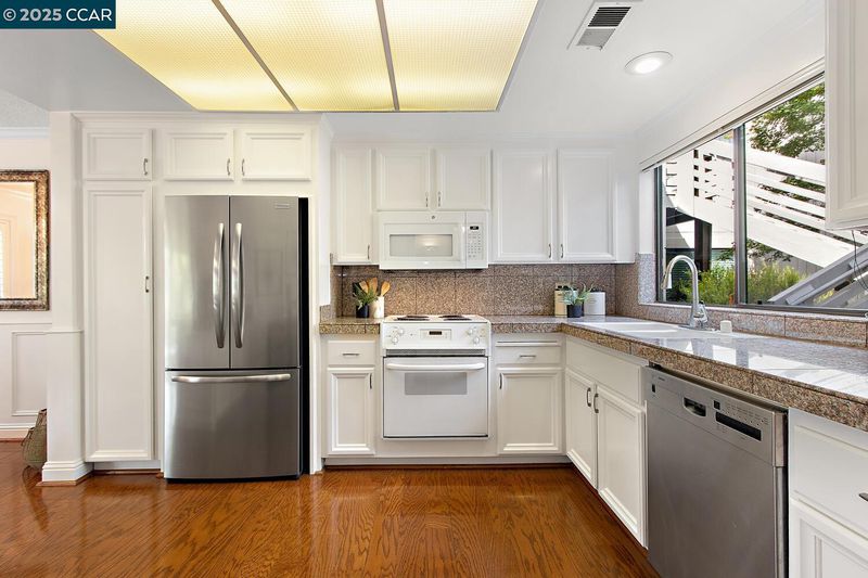- Dishwasher, Electric Range, Plumbed For Ice Maker, Microwave, Oven, Refrigerator, Dryer, Washer, Electric Water Heater, Stone Counters, Tile Counters, Electric Range/Cooktop, Disposal, Ice Maker Hookup, Oven Built-in, Updated Kitchen