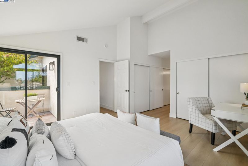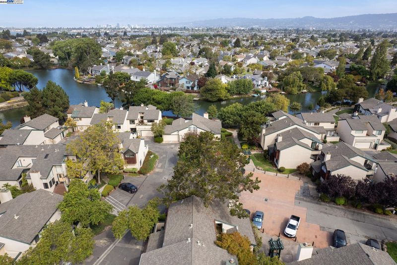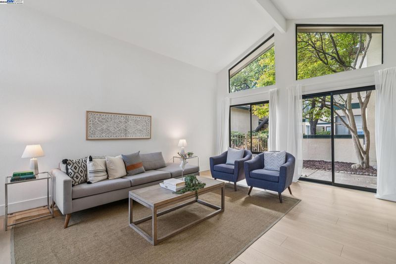 Every Corner Whispers: Stay a While. Every corner of 101 Carob Lane is designed to draw you in and make you linger. This Baywood Village corner townhome blends soaring style with an effortless rhythm of life that feels like a permanent getaway. Step into a dramatic living and dining space where cathedral ceilings and walls of glass flood the home with light that dances across custom floors. The eat-in kitchen and lounge area flow seamlessly, setting the stage for spontaneous evenings with friends or quiet nights at home. Upstairs, airy bedrooms offer versatility for guests, work, or creative pursuits, while the expansive primary suite becomes a sanctuary of its own, serene, inviting, complete with a private patio for sunrise coffee or sunset wine, and a peek of the lagoon just beyond. Details elevate the experience, including custom finishes, central air, sleek surfaces, stainless steel appliances, and a two-car garage. Outside, your front and back patios whisper relaxation, while the community lagoon-side pool and spa tempt you to slow down, recharge, and savor the moment. From shoreline trails with sweeping San Francisco views to SF ferry rides, Harbor Bay Club workouts, and neighborhood Starbucks, this is Harbor Bay living at its best.