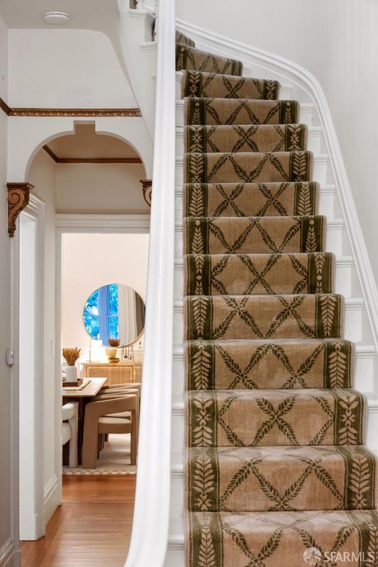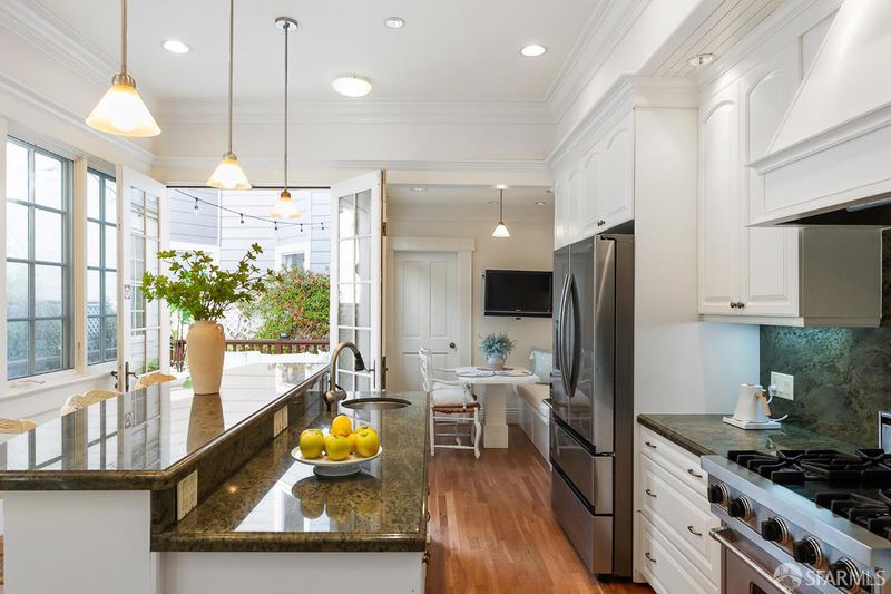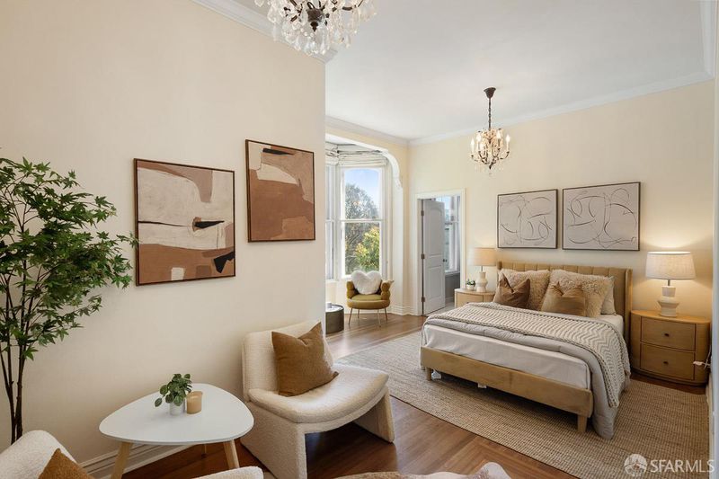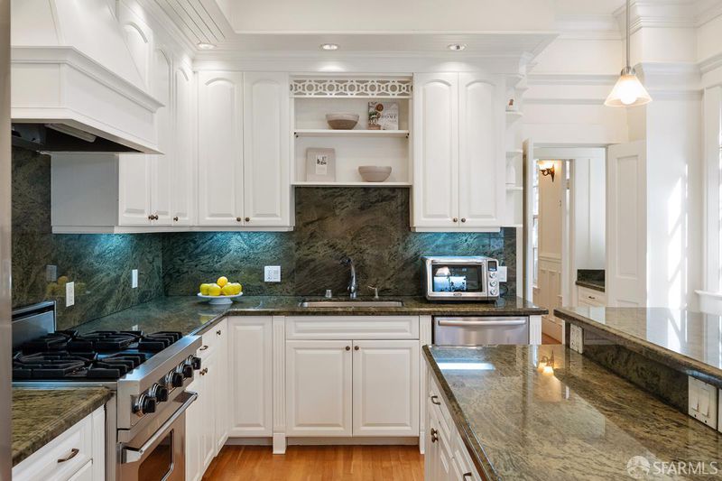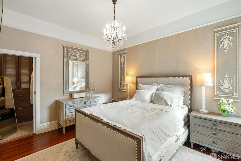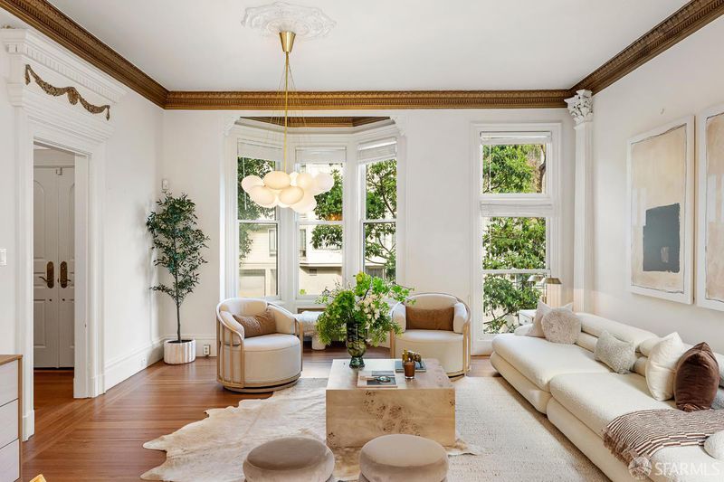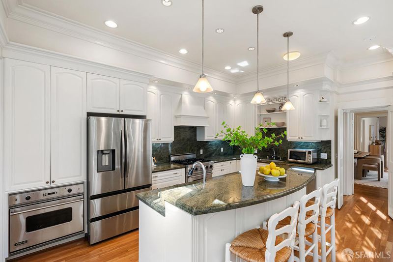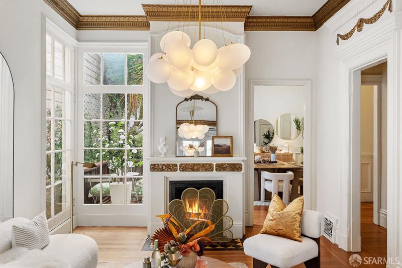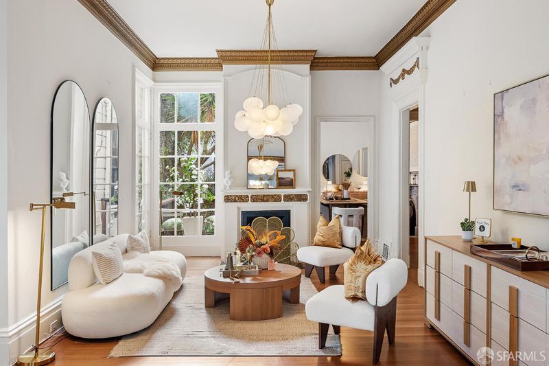 1705 Gough Street is an Italianate Victorian residence in Pacific Heights that seamlessly blends historic charm with modern refinementrecently featured in The New York Times. Grand living spaces showcase soaring ceilings, ornate columns, crown molding, elegant gold detailing, and statement bubble chandeliers, with expansive windows flooding the interiors with natural light. Multiple living areas invite gathering, from a grand living room with marble fireplaces and polished hardwood floors to tranquil garden views creating a warm and inviting atmosphere. The chef's kitchen boasts Viking appliances, marble countertops, a spacious island, breakfast area, and abundant cabinetry, ideal for entertaining or daily living. Bedrooms offer serene retreats with crystal chandeliers, tall windows, and custom finishes, while spa-inspired baths feature radiant floors, marble walk-in showers, soaking tubs, and vanities. Outdoor spaces include two patiosone intimate, overlooking a lush garden, the other framed by mature landscaping. Perfectly located near Lafayette Park, Fillmore Street, top schools, and San Francisco's finest dining and cultural venues, this sophisticated home balances history, style, and comfort.