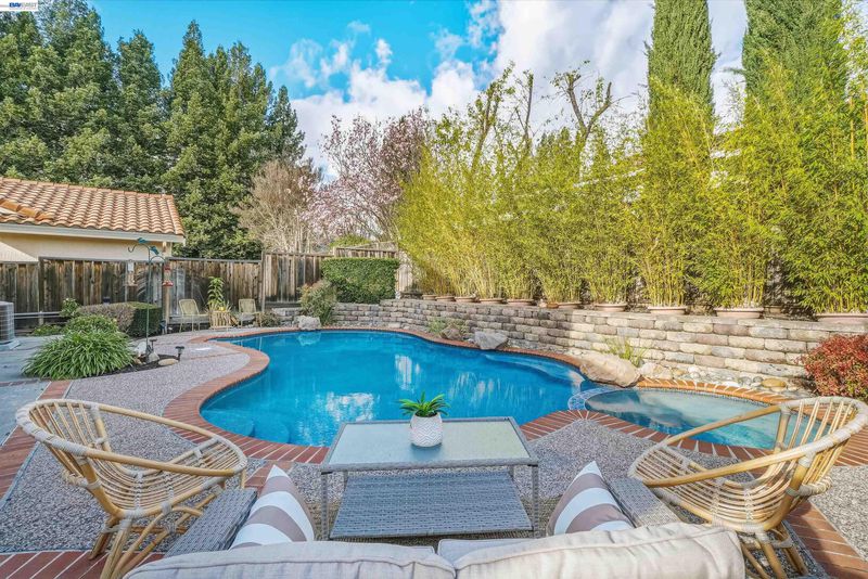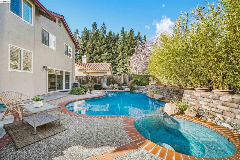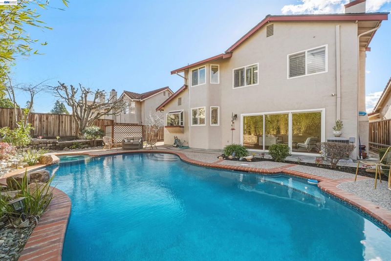Welcome to this beautifully maintained home in the highly sought-after Newcastle neighborhood on San Ramon’s Westside. Featuring 4 bedrooms and 3 full bathrooms, this home blends comfort, space, and timeless design. A desirable downstairs bedroom with an adjacent full bath provides flexibility for guests or a private home office. The kitchen flows seamlessly into the family room and opens to the backyard, creating an ideal layout for both everyday living and entertaining. Soaring ceilings and abundant natural light enhance the formal living and dining areas, while the cozy step-down family room features a fireplace and wet bar. Step outside to your private backyard retreat featuring a sparkling pool, mature fruit trees — jujube (Chinese date), apple, lime, and peach — and potted bamboo that creates a serene, vacation-inspired setting. The home is equipped with two independent HVAC systems for upstairs and downstairs, providing enhanced comfort and energy efficiency year-round. No HOA. Ideally located near top-rated schools and just minutes from Bishop Ranch, Central Park, Iron Horse Trail, City Center, Trader Joe’s, Whole Foods, Target, and dining. A rare opportunity to enjoy prime Westside living.