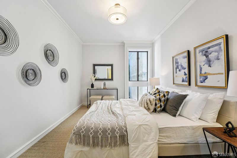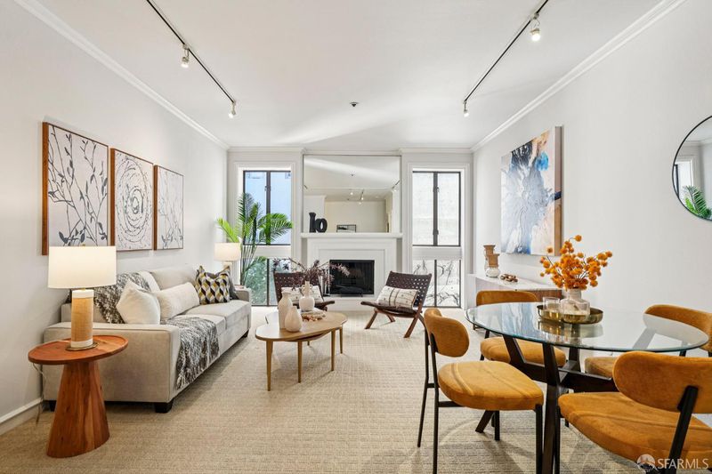 Welcome to this sophisticated and tranquil top-floor condominium in the highly sought-after Nob Hill Court where timeless charm meets modern comfort in one of San Francisco's most iconic neighborhoods. This beautifully updated 1-bedroom, 1-bath residence offers high ceilings with a bright and airy living space, enhanced by fresh designer paint, refined finishes, and stylish flooring throughout creating a move-in ready home. The inviting living room features a classic fireplace, perfect for cozy evenings, while elegant crown molding and plantation shutters add a touch of timeless character. Designed for both comfort and convenience, the home includes generous closet space, additional storage, and deeded parking an exceptional luxury in this prime location. Residents enjoy a pet-friendly community with multiple elevators and a serene, professionally landscaped courtyard offering a peaceful escape in the heart of the city. With an impressive 98 Walk Score, you're just moments from the very best of Nob Hill, including historic cable cars, renowned dining, luxury hotels, Huntington Park, and Grace Cathedral. Enjoy effortless access to Union Square, the Financial District, premier shopping, and public transportation. Whether you're searching for a stylish city residence or the perfect pied-terre, this exceptional home offers the ideal blend of elegance, location, and lifestyle. Nob Hill Court is a boutique three-story residence featuring 45 units arranged around an expansive, sun-filled interior courtyard that serves as a sanctuary for residents. HOA fee includes in-unit electricity, water, garbage, structure insurance, plus more.