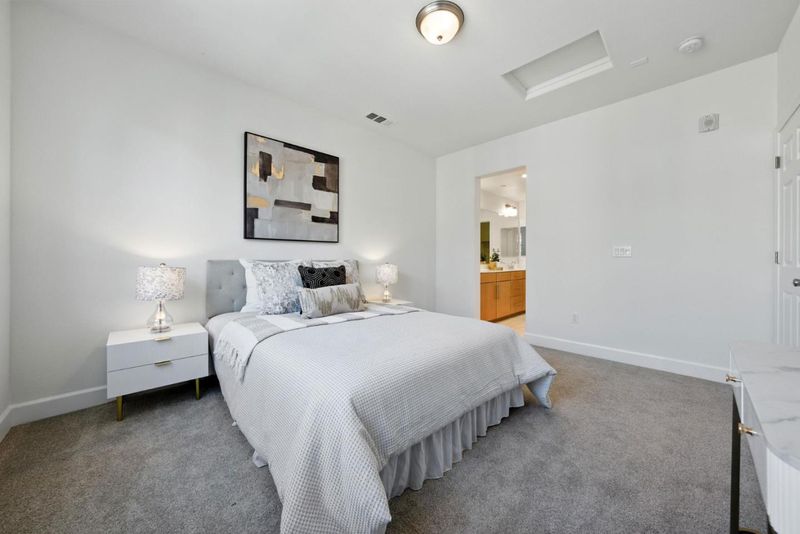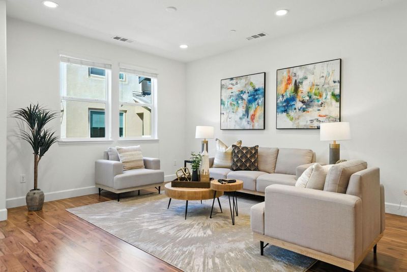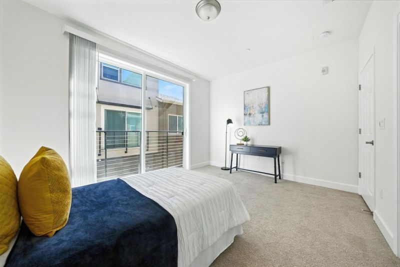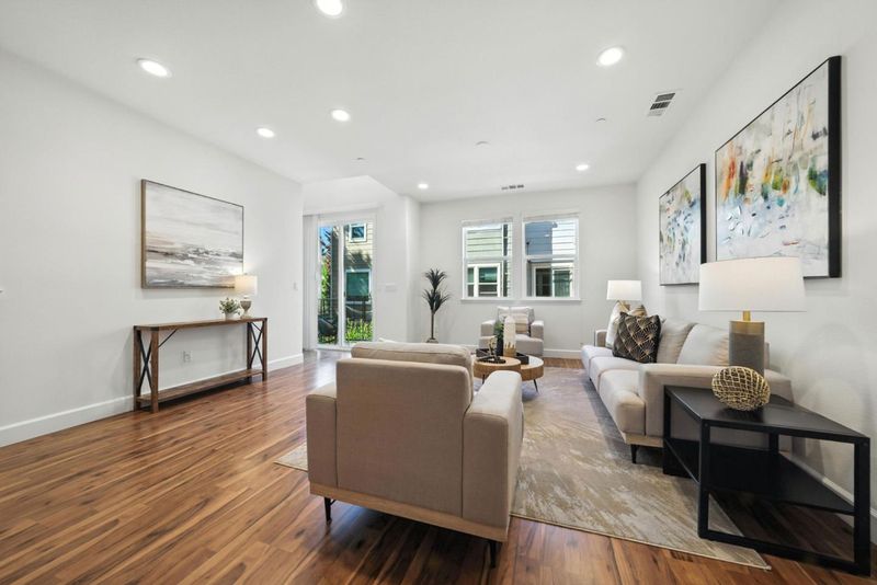 Welcome to this stylish, move-in ready tri-level townhome built in 2016 with extensive upgrades and abundant natural light throughout. The entry level opens to an oversized flex room with a half bath, perfect as an additional bedroom, open office, gym, or media space. Upstairs, the main level offers a spacious open-concept living and dining area that flows seamlessly into a beautifully maintained kitchen featuring stainless steel appliances, granite counters, an island with bar seating, and extensive cabinetry. This floor also includes a bedroom, full bathroom, laundry room, and a private balcony for easy indoor-outdoor living. On the top floor, the sunny primary suite boasts a walk-in closet and spa-inspired ensuite with dual vanities. An additional bedroom and bath complete the level, offering versatility for family, guests, or work-from-home needs. Set in a quiet, well-kept community just minutes from major tech campuses, vibrant Downtown Sunnyvale, Light Rail, Hwy 85, and 101, this home combines modern design, flexible living spaces, and an unbeatable location.