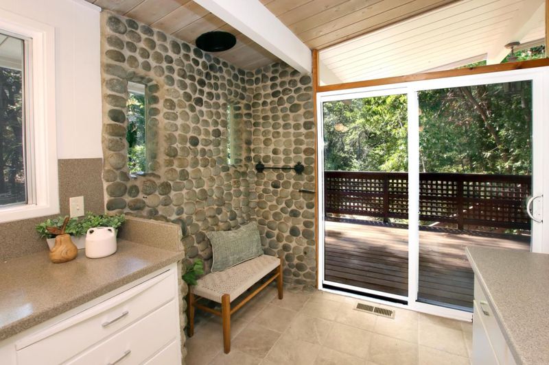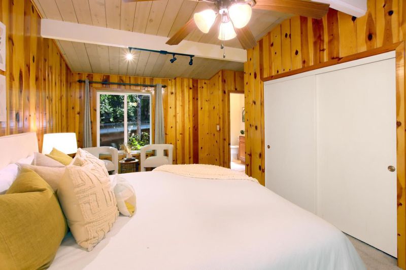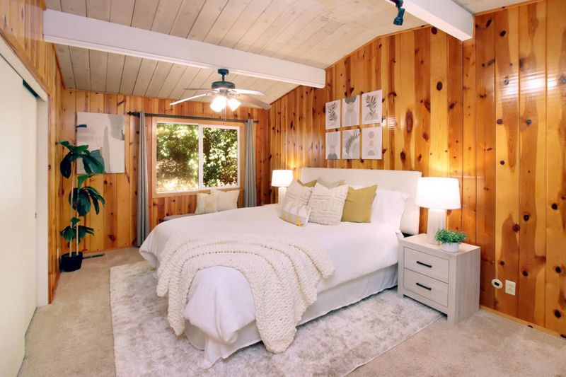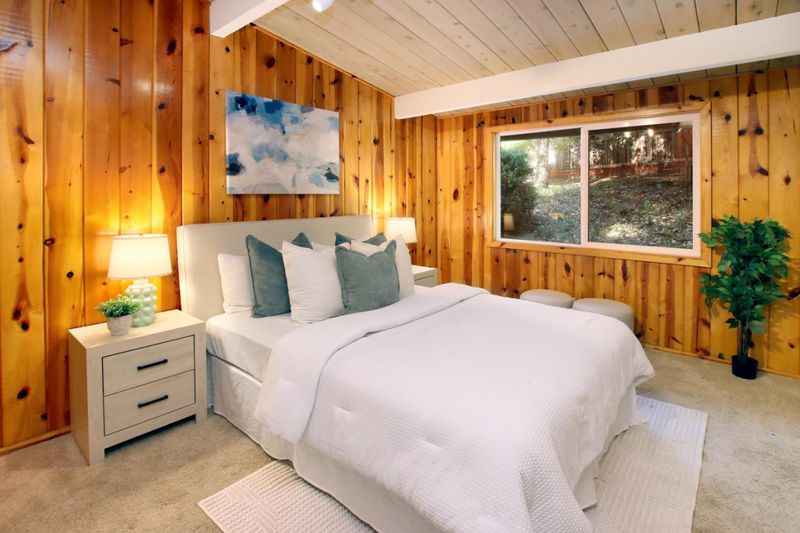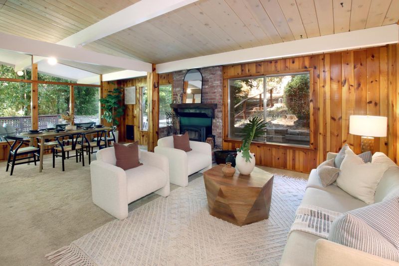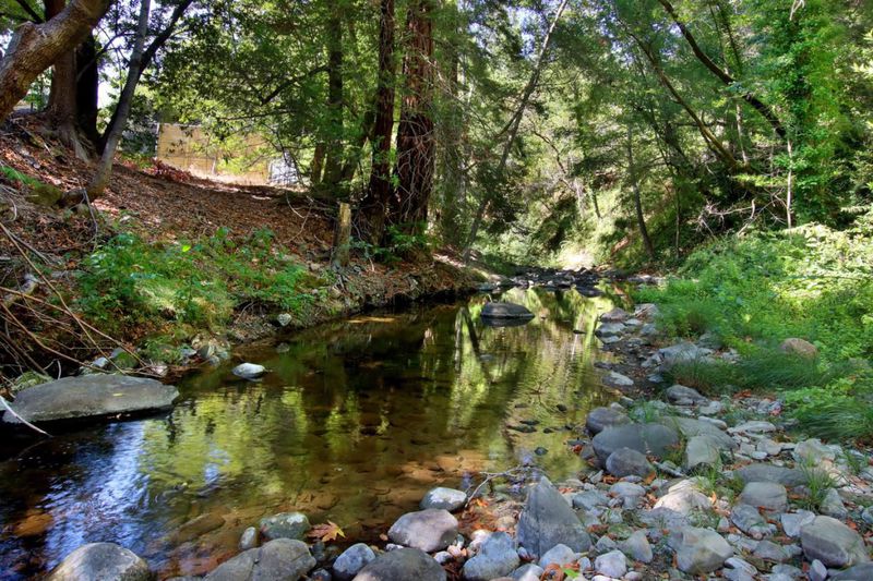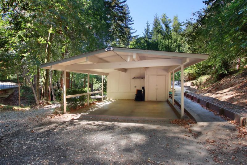 The best of both worlds, and beyond! Privately situated on nearly a half acre above a year round creek , walking distance to the Bear Creek swim and racquet park. This Eichler-esque mid 60's modern home has the flair and feel of Sunset magazines snappy getaways homes of that era. With floor to ceiling glass windows looking onto the deck-forest and creek below, from its spacious open beam ceiling living room with wood burning fireplace. Expansive deck with sunshine and shade connecting to patio yard and walkway. Walking path and horseshoe pit that could become Bocci ? Spacious carport with storage and laundry area, and plenty of visitor parking as well. This cozy slice of heaven awaits the buyer that wants privacy in a safe neighborhood setting, with the convenience of being only a couple miles from town in the friendly community of Bear Creek Estates. A place where your neighbors are nearby, but not side by side out your window. Classy compact and private is what characterizes this property, an ideal place to entertain alfresco, with all of the great outdoor spaces. Only 20 minutes to Los Gatos at highway 17, and 35 to the epicenter if Silicon Valley. 5 minutes to Boulder Creek and just 30 minutes to Santa Cruz. Great commuter home, or if you're lucky what a great office!