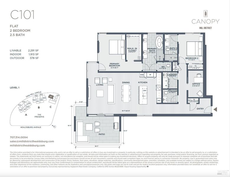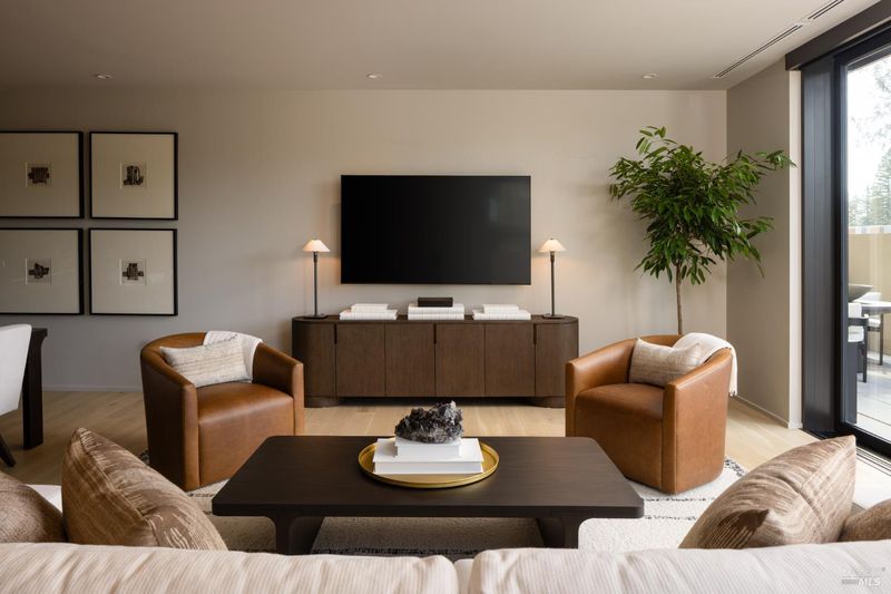 Canopy at Mill District features a superlative collection of luxury residences designed by world renowned AD100 architect Olson Kundig. Located in the heart of Healdsburg, this brand-new enclave is ideally located within walking distance to the charming central square where Michelin starred restaurants, tasting rooms and art galleries abound. C101, a premier two-bedroom, is a two-and-a-half-bathroom luxury condominium spanning 1,915 sqft. The home is an impressive open-plan living space, where the gourmet kitchen flows into the dining room, all framed by large windows. The living room provides direct access to a private patio with an outdoor kitchen. The primary bedroom features a generous walk-in closet and a luxurious, spa-like bathroom. Additionally, the unit includes a dedicated den, perfect for a home office, and a full-size laundry room for ultimate convenience. Canopy offers a limited selection of generously sized studio, 1-, 2- and 3-bedroom homes that effortlessly blend rustic sophistication, urban vibrancy, luxurious finishes, resort-like amenities, and the great outdoors. Interior features include Italian-made MandiCasa cabinetry, Miele appliances, temperature controlled wine storage, and stone countertops. Photos are of a similar unit.