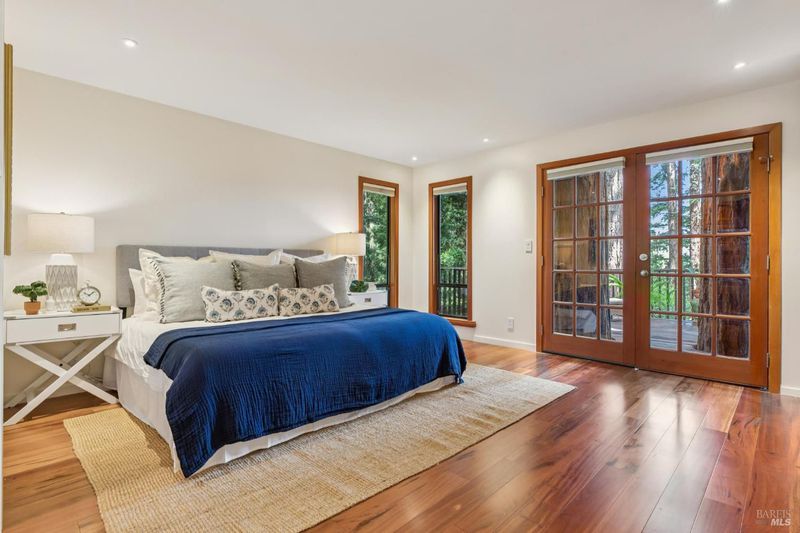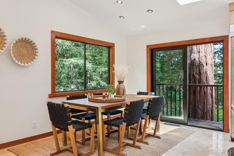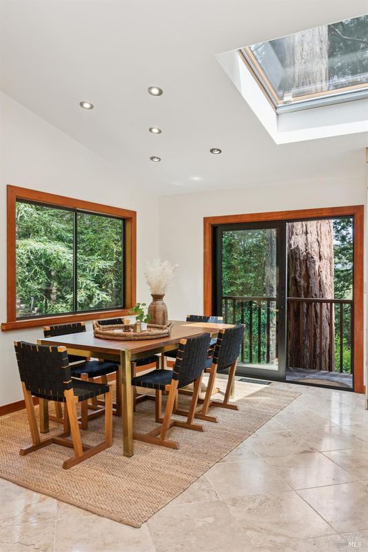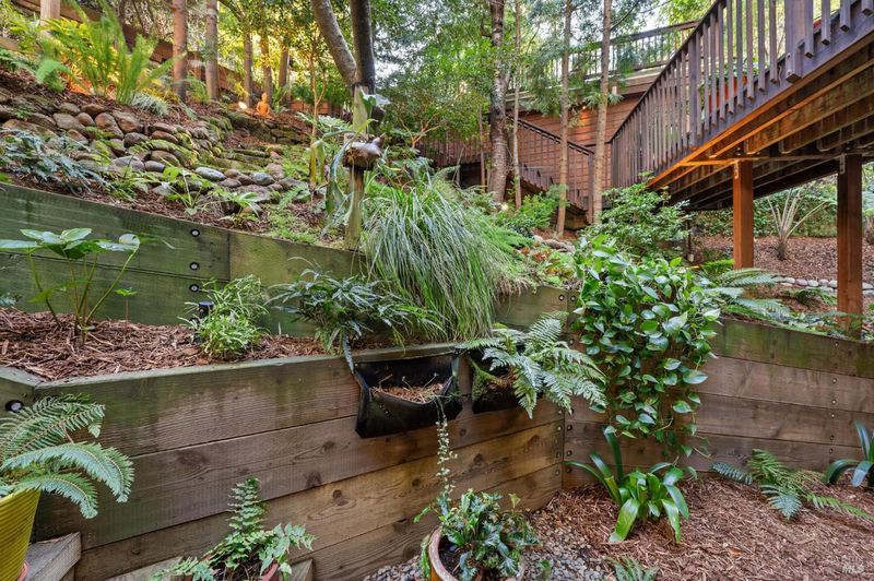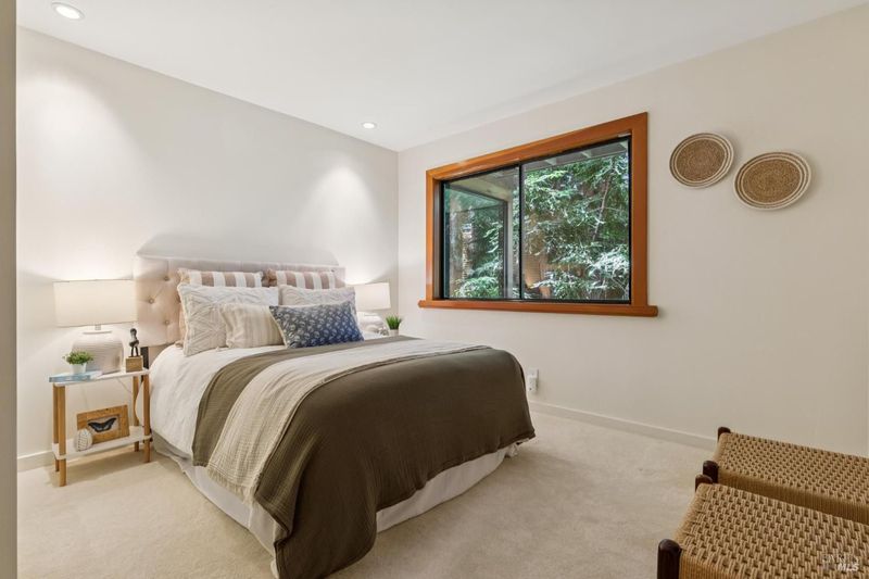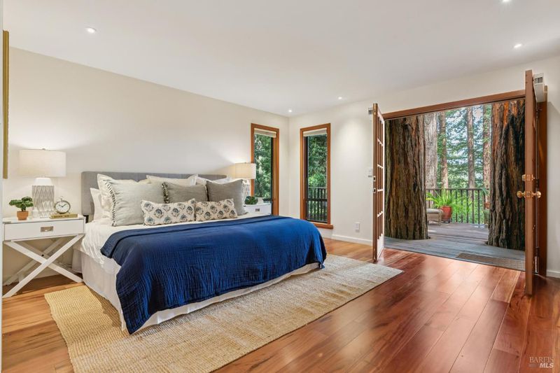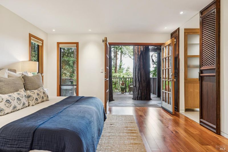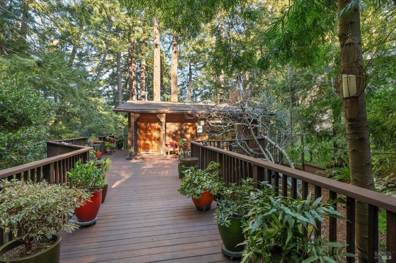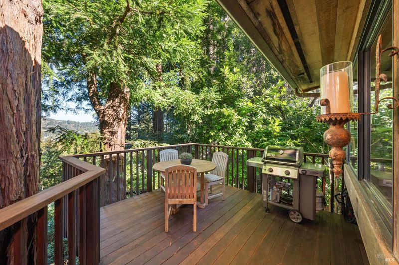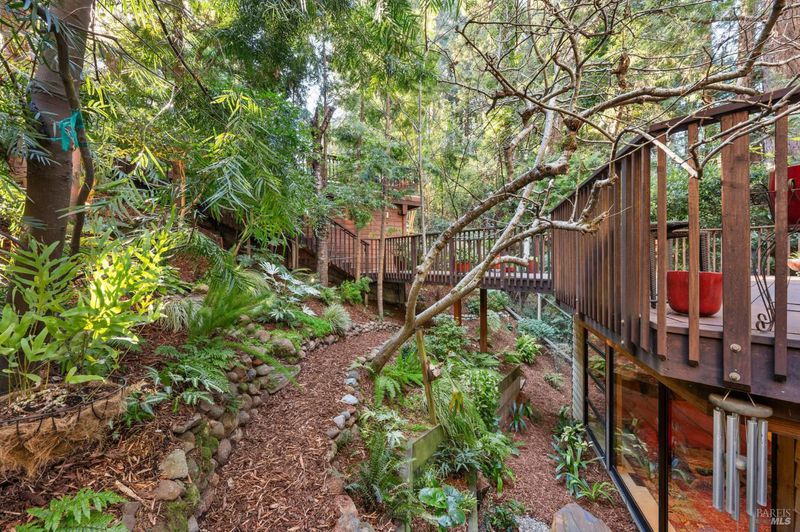 Set among towering redwoods on a quiet Mill Valley street, this one-of-a-kind home offers something rare: the feeling of living in a private forest retreat while staying moments from town, schools, parks, and daily conveniences. Thoughtfully designed with Zen-inspired outdoor spaces, two expansive decks, and treetop views from nearly every room, the home invites a slower, more connected way of living- morning coffee in the trees, family dinners under the canopy, and weekends filled with fresh air and adventure. A welcoming front deck leads into the main living level, where the living, dining, and kitchen spaces flow in an open-concept layout filled with natural light from oversized windows and skylights. The chef's kitchen features granite countertops, custom wood cabinetry, premium stainless appliances, and a generous island for gathering, homework, and casual meals. Rear deck access makes indoor-outdoor entertaining effortless. Downstairs, the private primary suite feels like a true sanctuary, opening to its own secluded deck. The newly renovated spa-style bath includes a deep porcelain soaking tub, heated shower floors, multiple shower heads, custom teak detailing, and a gray water diverter system that can nourish the surrounding redwoods. An additional bedrooms and a full bath complete this level, including a spacious and flexible third bedroom with a built-in office area, custom Murphy bed, generous storage, and floor-to-ceiling frameless windows and doors overlooking the terraced garden. A significant value-add: this property includes two parcels on a street-to-street lot (one APN), creating potential for an ADU with separate Florence Street accessideal for guests, extended family, an au pair suite, home office, or future income opportunity. With direct proximity to the iconic Dipsea Trail stairs, nearby parks, top-rated schools, and vibrant downtown Mill Valley, this home delivers an exceptional blend of privacy, elegance, and everyday livability for families who want both nature and community.