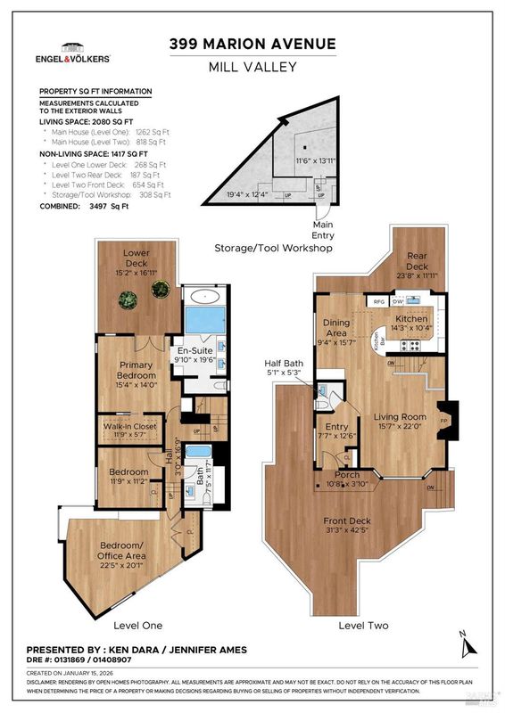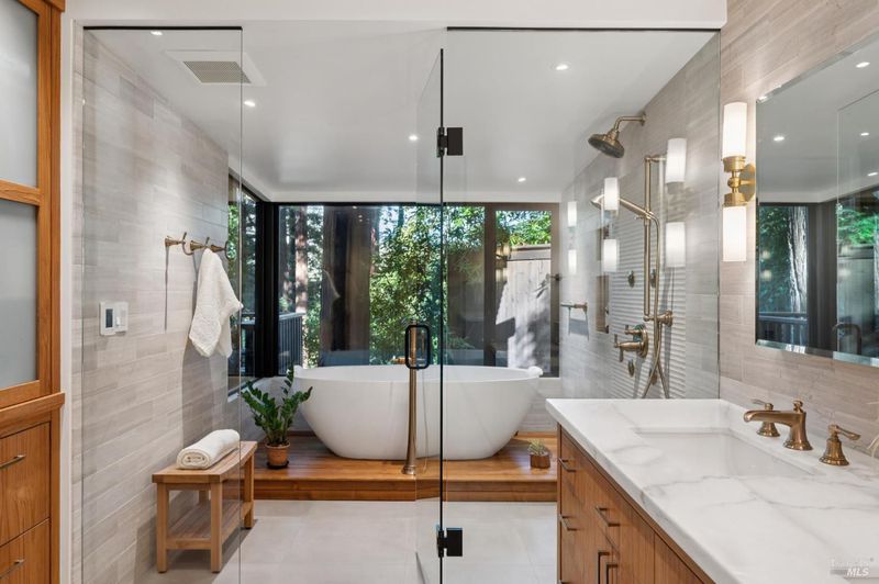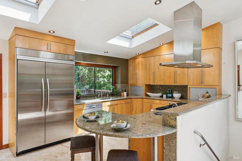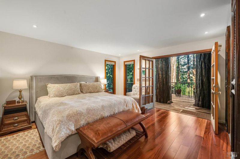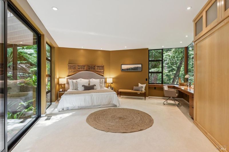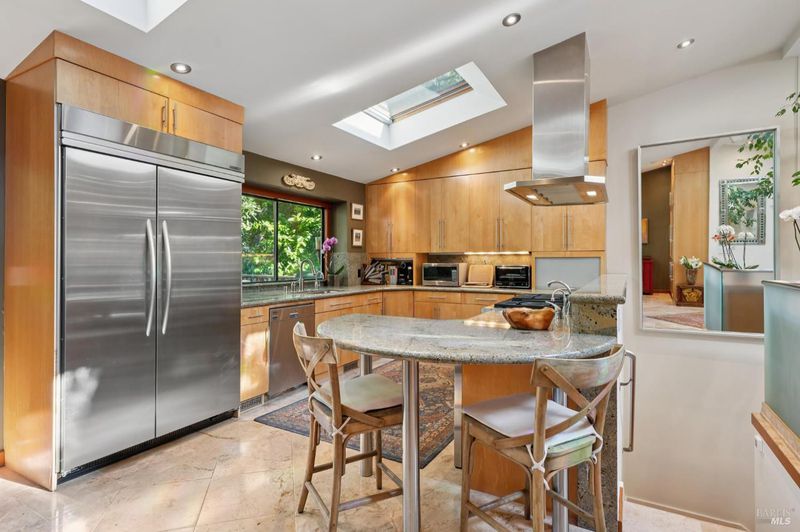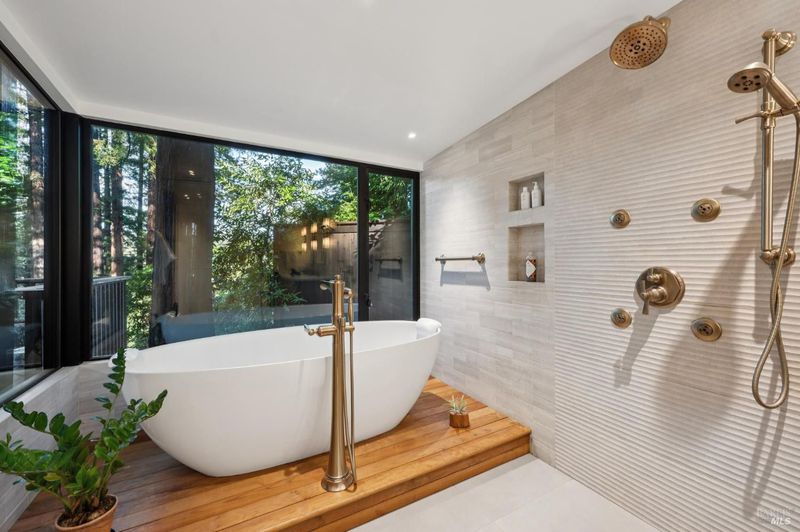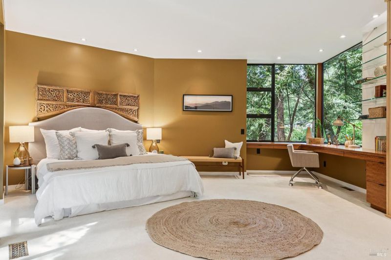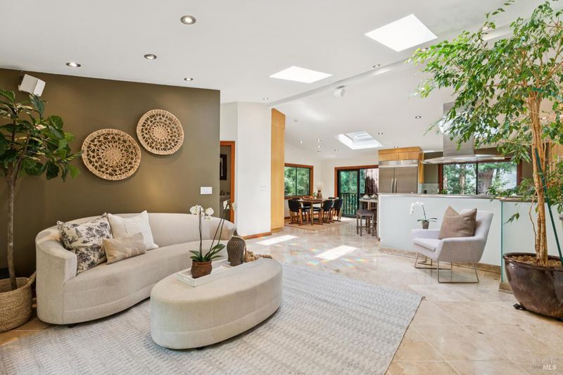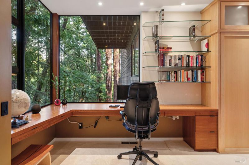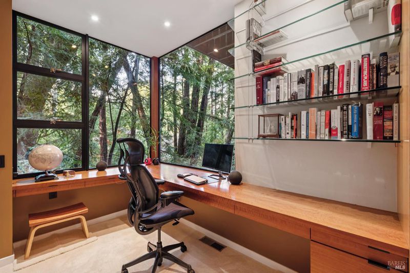 Set among towering redwoods on a quiet Mill Valley street, this one-of-a-kind home offers something rare: the feeling of living in a private forest retreat while staying moments from town, schools, parks, and daily conveniences. Thoughtfully designed with Zen-inspired outdoor spaces, two expansive decks, and treetop views from nearly every room, the home invites a slower, more connected way of living- morning coffee in the trees, family dinners under the canopy, and weekends filled with fresh air and adventure. A welcoming front deck leads into the main living level, where the living, dining, and kitchen spaces flow in an open-concept layout filled with natural light from oversized windows and skylights. The chef's kitchen features granite countertops, custom wood cabinetry, premium stainless appliances, and a generous island for gathering, homework, and casual meals. Rear deck access makes indoor-outdoor entertaining effortless. Downstairs, the private primary suite feels like a true sanctuary, opening to its own secluded deck. The newly renovated spa-style bath includes a deep porcelain soaking tub, heated shower floors, multiple shower heads, custom teak detailing, and a gray water diverter system that can nourish the surrounding redwoods. An additional bedrooms and a full bath complete this level, including a spacious and flexible third bedroom with a built-in office area, custom Murphy bed, generous storage, and floor-to-ceiling frameless windows and doors overlooking the terraced garden. A significant value-add: this property includes two parcels on a street-to-street lot (one APN), creating potential for an ADU with separate Florence Street accessideal for guests, extended family, an au pair suite, home office, or future income opportunity. With direct proximity to the iconic Dipsea Trail stairs, nearby parks, top-rated schools, and vibrant downtown Mill Valley, this home delivers an exceptional blend of privacy, elegance, and everyday livability for families who want both nature and community.
