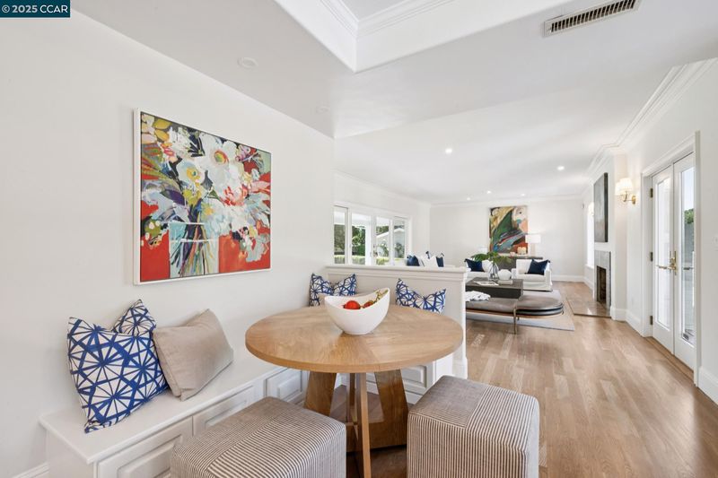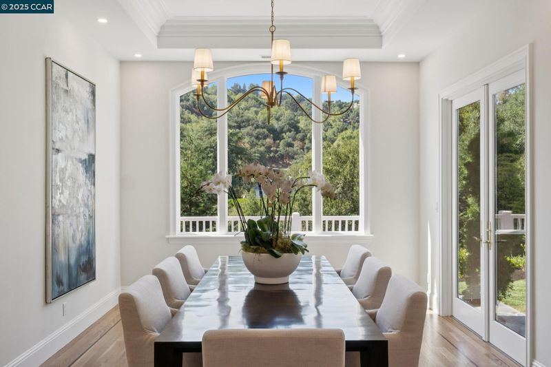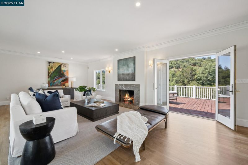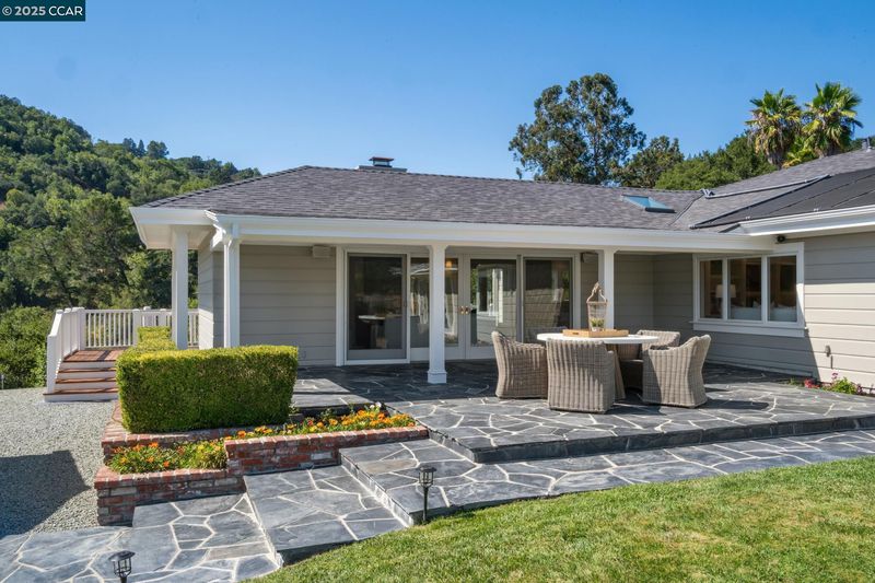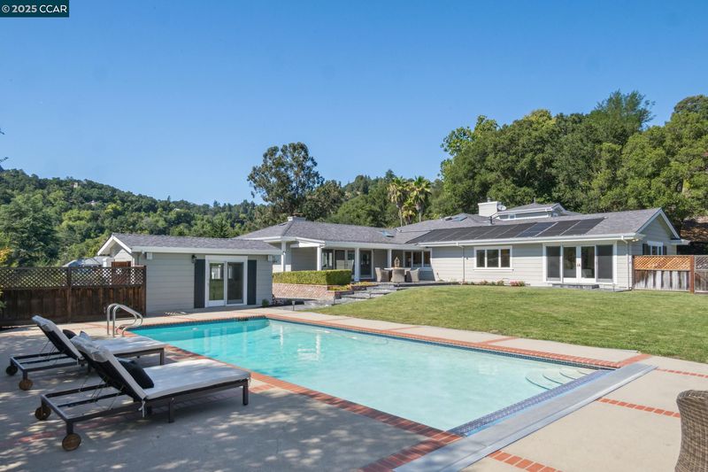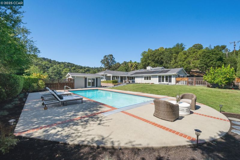 Discover versatile living and timeless sophistication in this stunning traditional home located on a premier 1.06-acre lot in Lafayette’s Upper Happy Valley. Designed as a true retreat with sweeping valley views, the property offers sunny outdoor spaces, level lawns, and expansive patios and decks for entertaining. Inside, the thoughtful floorplan, detailed millwork, hardwood floors, and soaring ceilings create a welcoming backdrop for everyday living. Most living areas are on the main level, with a spacious upstairs suite that can serve as a second primary, guest quarters, or bonus retreat. The elegant dining and living rooms feature expansive windows, a fireplace, and French doors opening to the backyard. At the heart of the home, the kitchen with large center island opens to the family room and extends to the covered patio, lawn, and pool. The grounds are designed for relaxation and entertaining, with a pool, hot tub, cabana with full bath and studio, and sauna. Expansive lawns and decks invite barbecues, play, or evening gatherings, all set against tranquil valley views. Just minutes to Lamorinda dining, shopping, BART, freeway access, and top-rated schools, this home balances retreat-like living with everyday convenience.